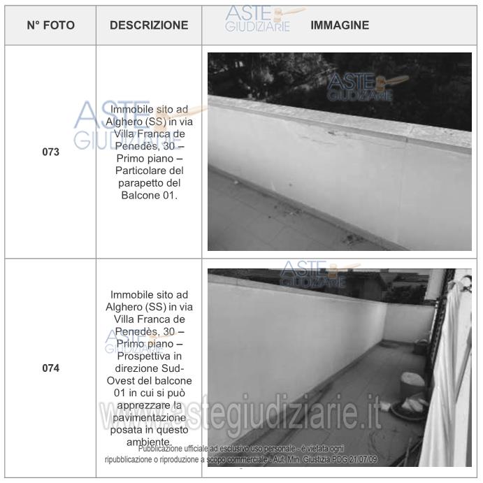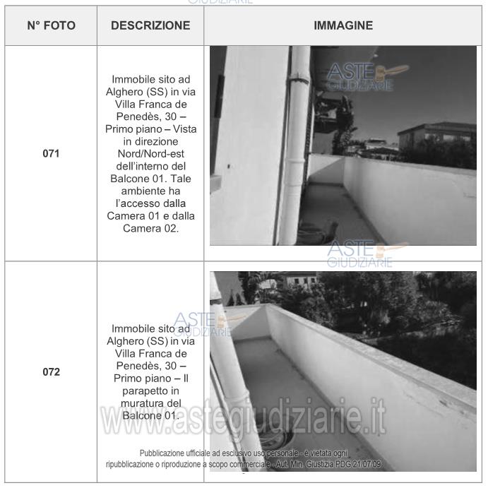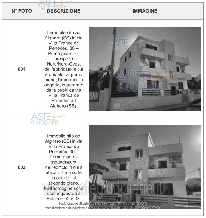 Vendita all'asta Senza incanto, con gara telematica asincrona - LOTTO UNICO: Appartamento in Alghero, Via Villafranca del Panedes n. 30, distinto in NCEU al foglio 71, particella 3774, sub. 3, piano 1°, categoria A/2, classe 2, vani 7, rendita catastale €. 1.048,41. (L'immobile richiede manutenzione straordinaria per ripristino agibilità). Prezzo base € 150.649,39 (offerta minima € 112.987,05). Data inizio operazioni di vendita: 11/06/2026 ore 17:00. Professionista delegato alla vendita: Avv. Pierpaolo Pintore - Email "pierpaolo.pintore@tiscali.it"; Tel. 079/237725.