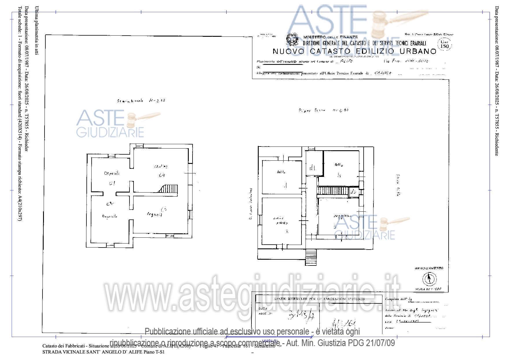Vendita all'asta Senza incanto, con gara telematica asincrona - LOTTO UNICO: Piena ed intera proprietà di piccolo fabbricato rurale con area esterna circostante sito in Alife alla via Scafa snc. Il fabbricato si compone di due piani fuori terra (oltre sottotetto non accessibile) composto al piano seminterrato da ambienti adibiti a tavernetta, pranzo, salone wc, disimpegno e locale di sgombero ed al primo piano da cucina, ripostiglio, corridoio, wc e tre camere da letto oltre balconi esterni, mq. 253 circa. L’area esterna pertinenziale è un terreno esteso circa 3.570 mq. Prezzo base € 86.000,00 (offerta minima € 64.500,00). Data inizio operazioni di vendita: 02/07/2026 ore 10:00. Giudice: Linda Catagna.