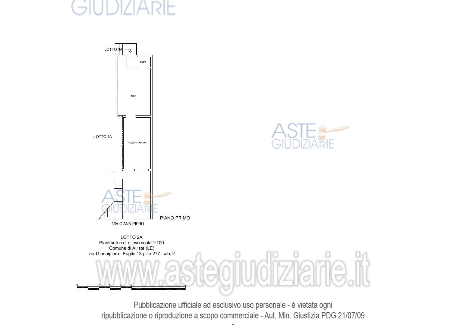 Vendita in attesa dell'emissione del nuovo bando d'asta. LOTTO UNICO: LOTTO UNICO: piena proprietà per la quota di 1000/1000 del fabbricato residenziale sito in Alliste (Le) - frazione contrada Posto Rossi - alla via Giannipero (s.p. 265). Ultimo prezzo base € 96.500,00 (offerta minima € 72.375,00). Professionista delegato alla vendita Dott. Carlo Malandugno - Email "carlomalandugno@libero.it"; Cell. 3477383246.  Rif. Tribunale di Lecce - Contenzioso civile n. 1108/2021