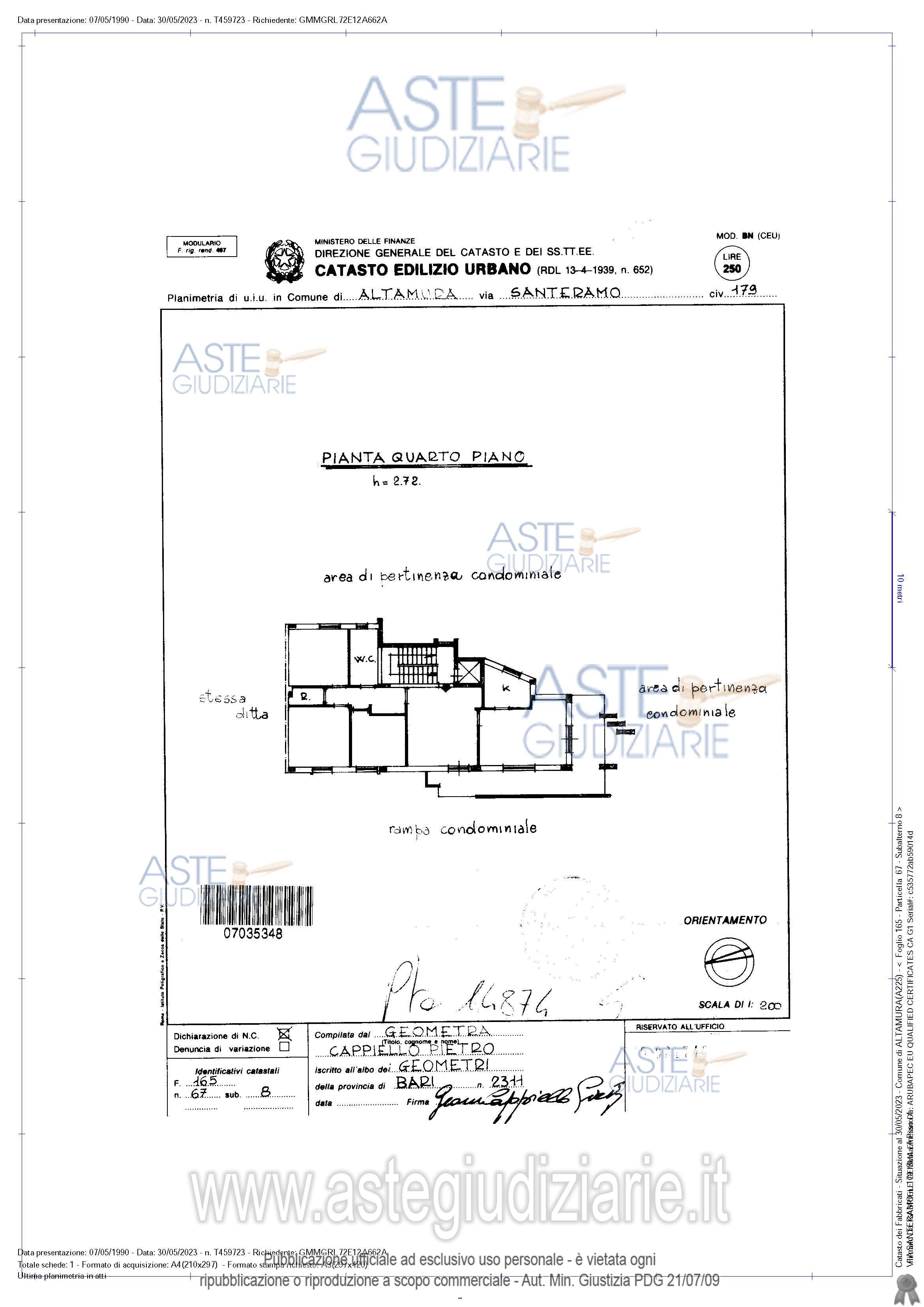 Vendita all'asta Senza incanto, con gara telematica asincrona - LOTTO UNICO: Diritto di proprietà pari a 1/1 dell’appartamento composto da 5 vani al terzo piano sul rialzato, oltre locale garage al piano seminterrato. L’unità immobiliare è composta da soggiorno all’ingresso, salotto con cucinino oltre camera da letto matrimoniale, cameretta, studio, ripostiglio e bagno. L’immobile è, inoltre, dotato di ampio balcone lungo che si affaccia su due lati. Prezzo base € 157.250,00 (offerta minima € 117.937,50). Data inizio operazioni di vendita: 24/11/2025 ore 17:00. Giudice Dott. Chiara Cutolo. Professionista delegato alla vendita Avv. Giuseppina Ostuni - Email "studiolegalegostuni@gmail.com". Custode Giudiziario Avv. Giuseppina Ostuni - Email "studiolegalegostuni@gmail.com". Rif. Tribunale di Bari - Esecuzione immobiliare post legge 80 n. 13/2023