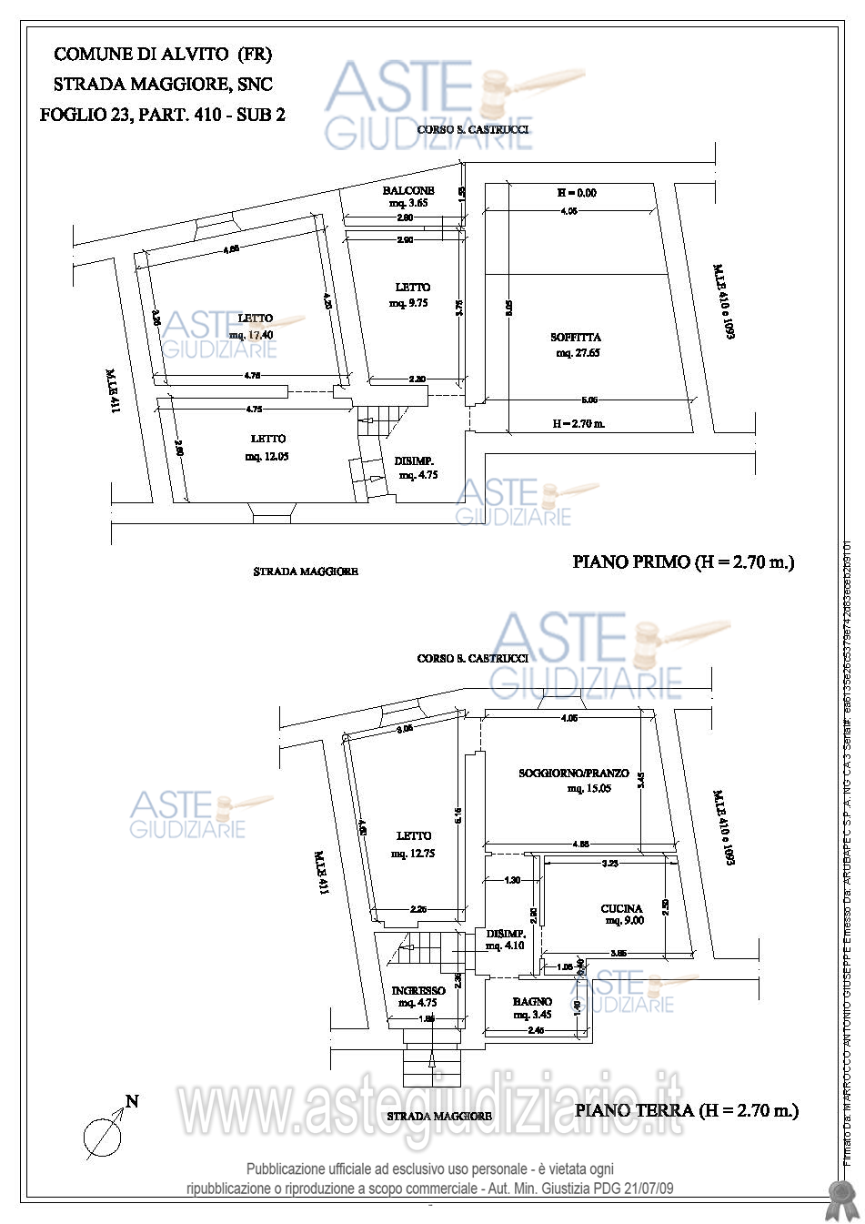 Vendita all'asta Senza incanto - LOTTO UNICO: Immobile distinto nel NCEU ,in Alvito FR, al F.23 ,pp. graffate 410 sub 2 e 411 sub 5 , è costituito da un appartamento ad uso abitativo, sito nel Comune di Alvito, Strada Maggiore snc, dislocato su due piani e costituito da 8 vani in totale , di cui 4 al piano Terra ( rialzato) su Strada Maggiore e 4 vani al piano primo sempre rispetto a Strada Maggiore . Una scala interna porta al primo piano ed una ulteriore piccola rampa porta al sottotetto. Prezzo base € 8.960,00 (offerta minima € 6.720,00). Data vendita 14/05/2026 ore 09:30. Professionista delegato alla vendita Avv. Angela Antonilli - Email "antonilli.angela@libero.it"; Cell. 3494285749; Tel. 3494285749. Custode Giudiziario Avv. Angela Antonilli - Email "antonilli.angela@libero.it"; Cell. 3494285749; Tel. 3494285749. Rif. Tribunale di Cassino - Esecuzione immobiliare post legge 80 n. 11/2015
