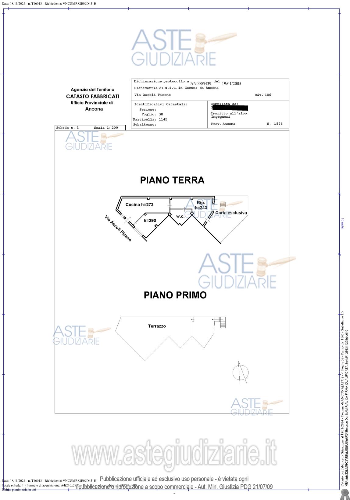 Vendita in attesa dell'emissione del nuovo bando d'asta. LOTTO UNICO: Appartamento di mq 61,20 superficie netta, con corte mq 30,00 e terrazzo mq. 72,20.