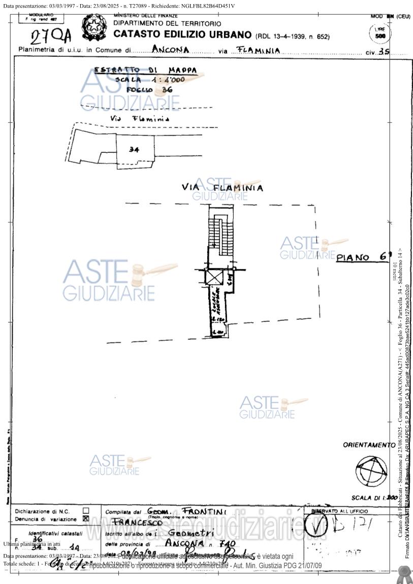 Vendita all'asta Senza incanto, con gara telematica asincrona - LOTTO UNICO: Piena proprietà di appartamento e soffitta piani 2-6, il tutto all'interno di un fabbricato condominiale. Prezzo base € 128.000,00 (offerta minima € 96.000,00). Data inizio operazioni di vendita: 16/04/2026 ore 12:15. Professionista delegato alla vendita Dott. Rita Bergamo. Custode Giudiziario Dott. Rita Bergamo - Email "dott.bergamorita@libero.it"; Tel. 0732629366. Rif. Tribunale di Ancona - Espropriazione immobiliare (cartabia) n. 39/2025