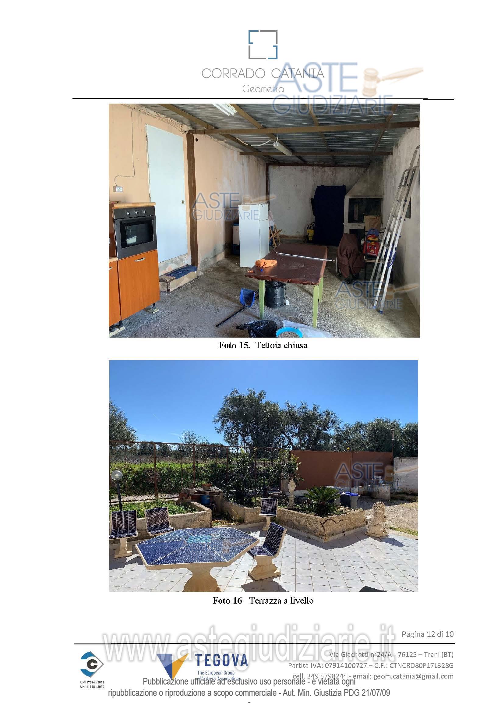 Professionista delegato alla vendita Avv. Cecilia Tedone - Email "avv.ceciliatedone@gmail.com"; Tel. 080/2372695.