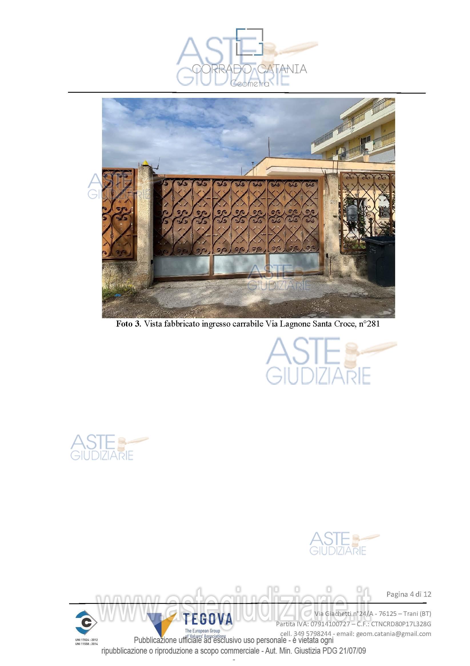 Custode Giudiziario Avv. Cecilia Tedone - Email "avv.ceciliatedone@gmail.com"; Tel. 080/2372695.