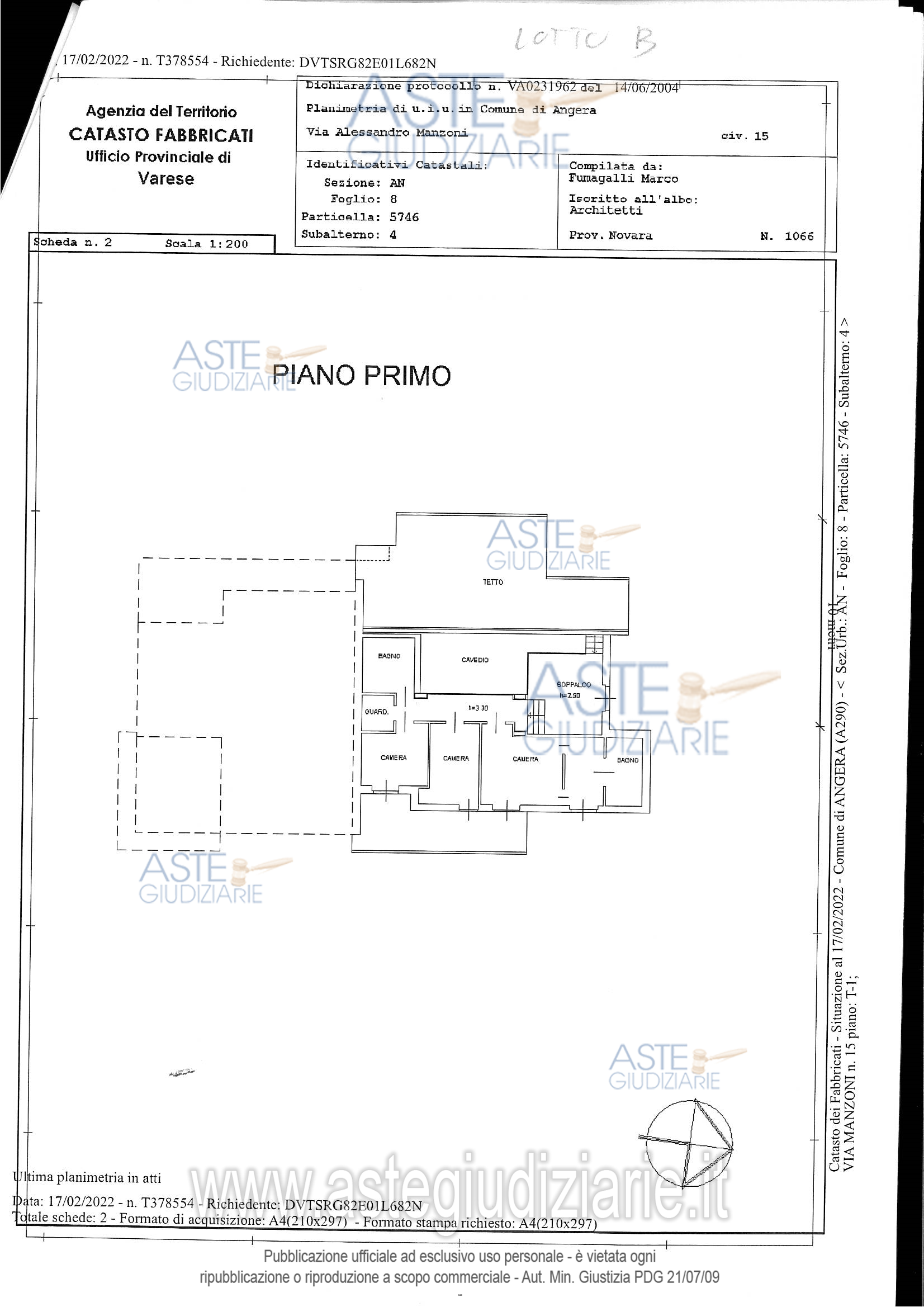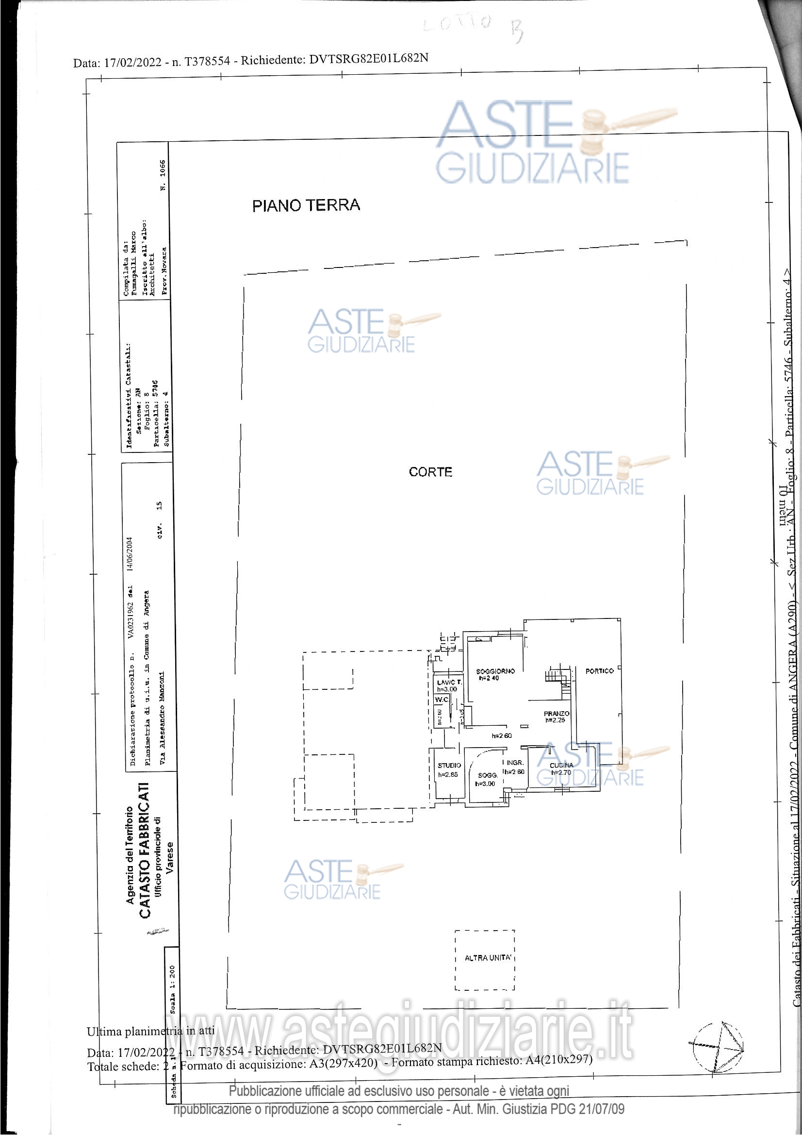 Vendita all'asta Senza incanto, con gara telematica sincrona mista - LOTTO UNICO: Per l’usufrutto In Comune di ANGERA (VA) a parte di fabbricato a destinazione residenziale, sito in Via Manzoni n. 19,- unità immobiliare su due piani, terra e primo, così composta:piano terra: ingresso e piccolo soggiorno, cucina, pranzo, soggiorno, studio, lavanderia/centrale termica, w.c. e portico;piano primo: soppalco, tre camere, guardaroba, disimpegno e due bagni;- autorimessa in corpo di fabbrica separato. Prezzo base € 42.163,20 (offerta minima € 31.622,40). Data vendita 28/11/2025 ore 15:15. Giudice Flaminia D'angelo. Professionista delegato alla vendita Avv. Sandra Leotta. Custode Giudiziario G.I.V.G. Srl - Email "segreteria.va@givg.it"; Tel. 0332335510. Rif. Tribunale di Varese - Esecuzione immobiliare post legge 80 n. 89/2020