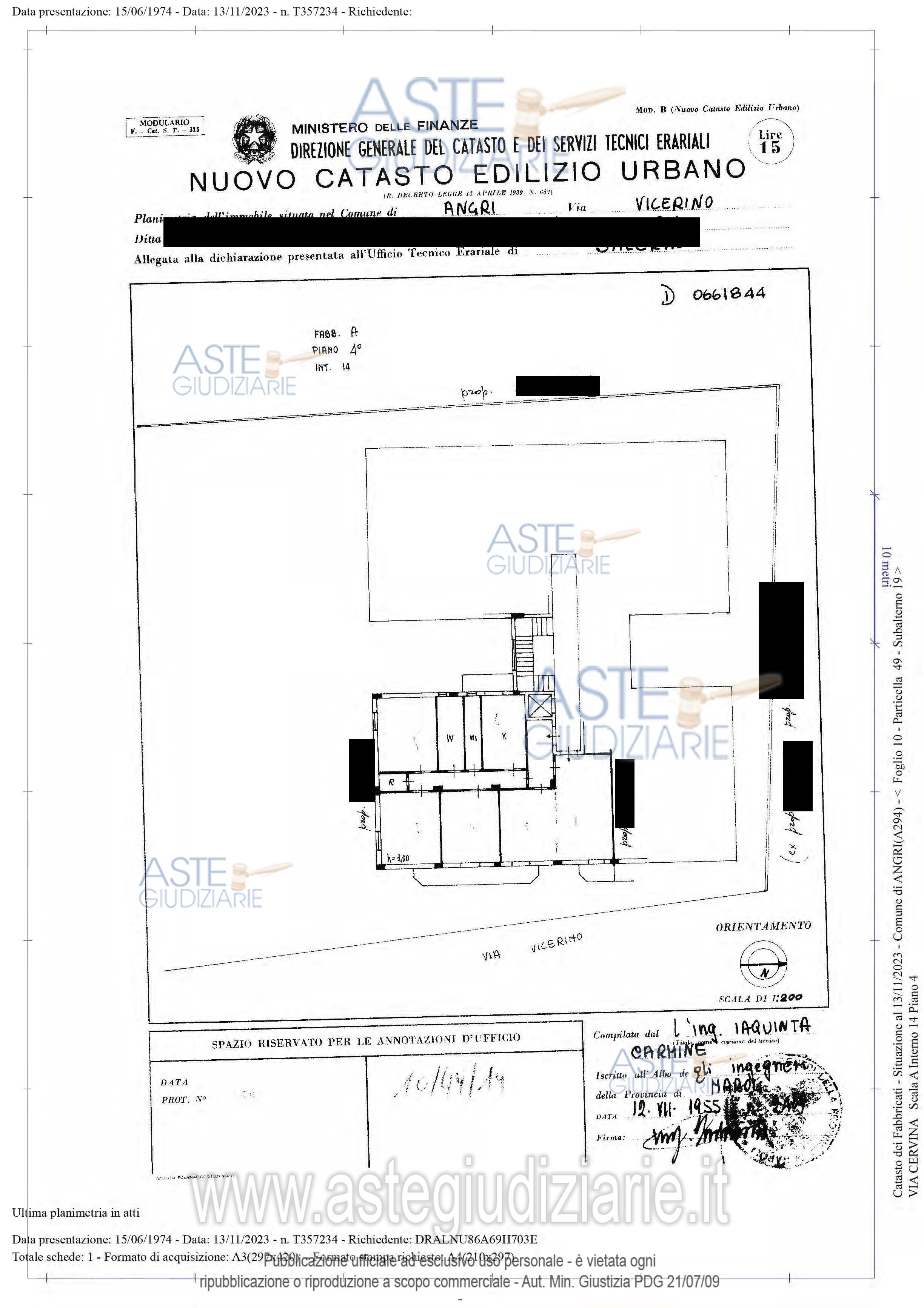 Недвижимое имущество принадлежит квартире в кондоминиуме, расположенном на юго-востоке города Ангри по адресу Via Cervinia, 128. Жилое помещение находится на 4-м этаже здания, которое состоит из восьми этажей над землей.