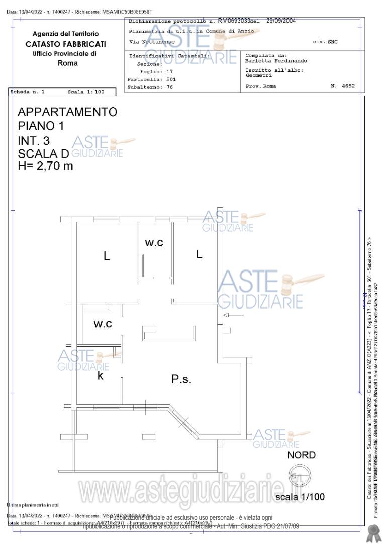 Vendita all'asta Senza incanto, con gara telematica asincrona - LOTTO UNICO: Appartamento, scala D, piano primo, int. 3, composto da soggiorno, cucina, corridoio, due bagni, due camere e balcone oltre cantina al piano S1. Prezzo base € 70.000,00 (offerta minima € 52.500,00). Data inizio operazioni di vendita: 24/03/2026 ore 12:00. Professionista delegato alla vendita Avv. Alessandro Novelli - Email "a.novelli@studionovellisupino.it". Custode Giudiziario Avv. Alessandro Novelli - Email "a.novelli@studionovellisupino.it". Rif. Tribunale di Velletri - Esecuzione immobiliare post legge 80 n. 378/2021