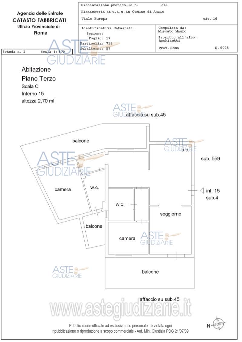 Vendita in attesa dell'emissione del nuovo bando d'asta. LOTTO 21: Appartamento ubicato in Anzio (Rm), Viale Europa 16, scala C, interno 15, piano 3, composto da soggiorno, sala da pranzo con angolo cottura, due camere da letto, due bagni, un disimpegno d’ingresso, due disimpegni e tre balconi coperti. Nello stato di fatto e diritto in cui si trova, occupato da terzi senza titolo. Ultimo prezzo base € 141.000,00 (offerta minima € 105.750,00). Professionista delegato alla vendita Avv. Renato Negroni - Email "renato.negroni@studiolegalenegroni.it"; Tel. 0693667686. Rif. Tribunale di Velletri - Contenzioso civile n. 7418/2019