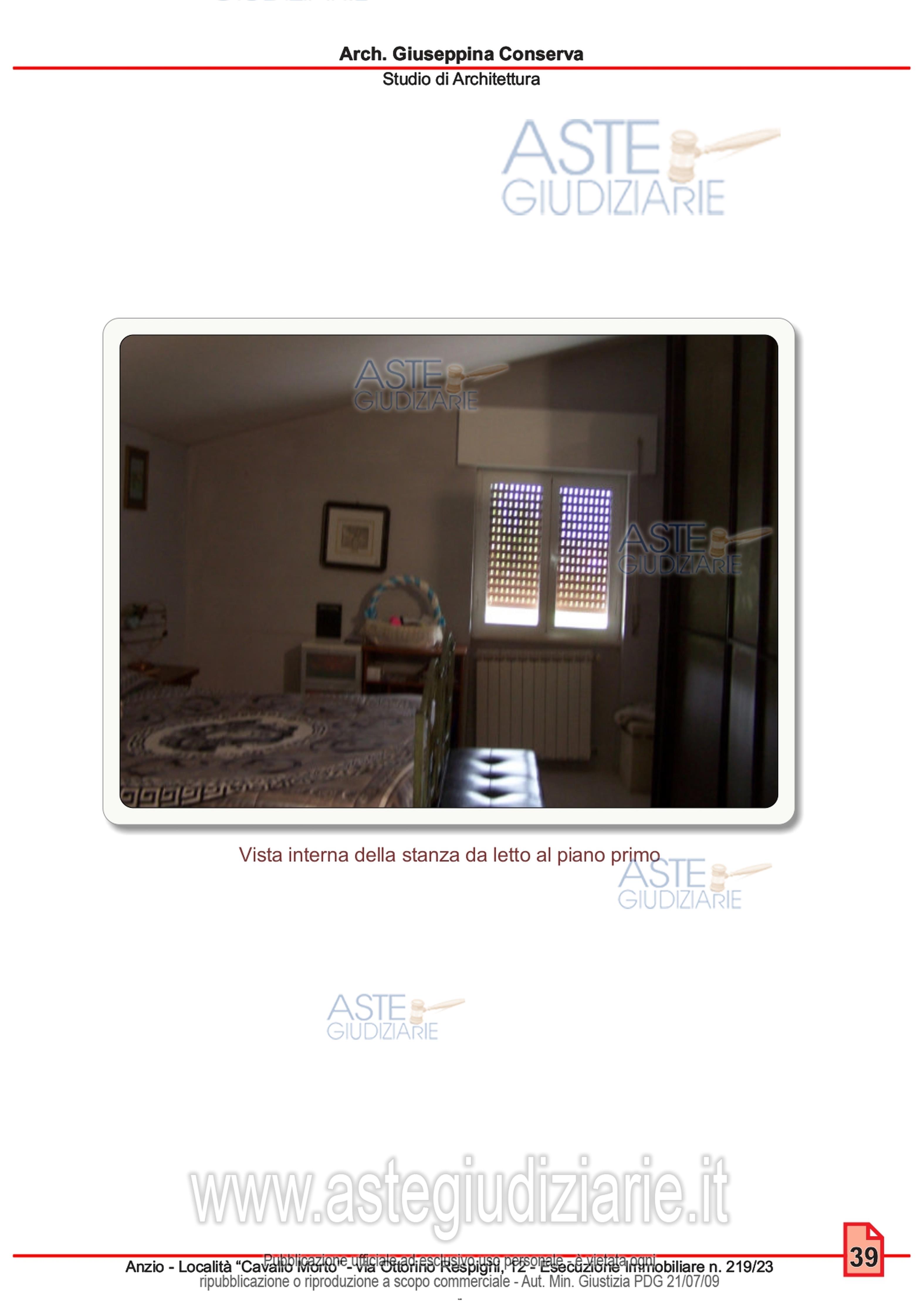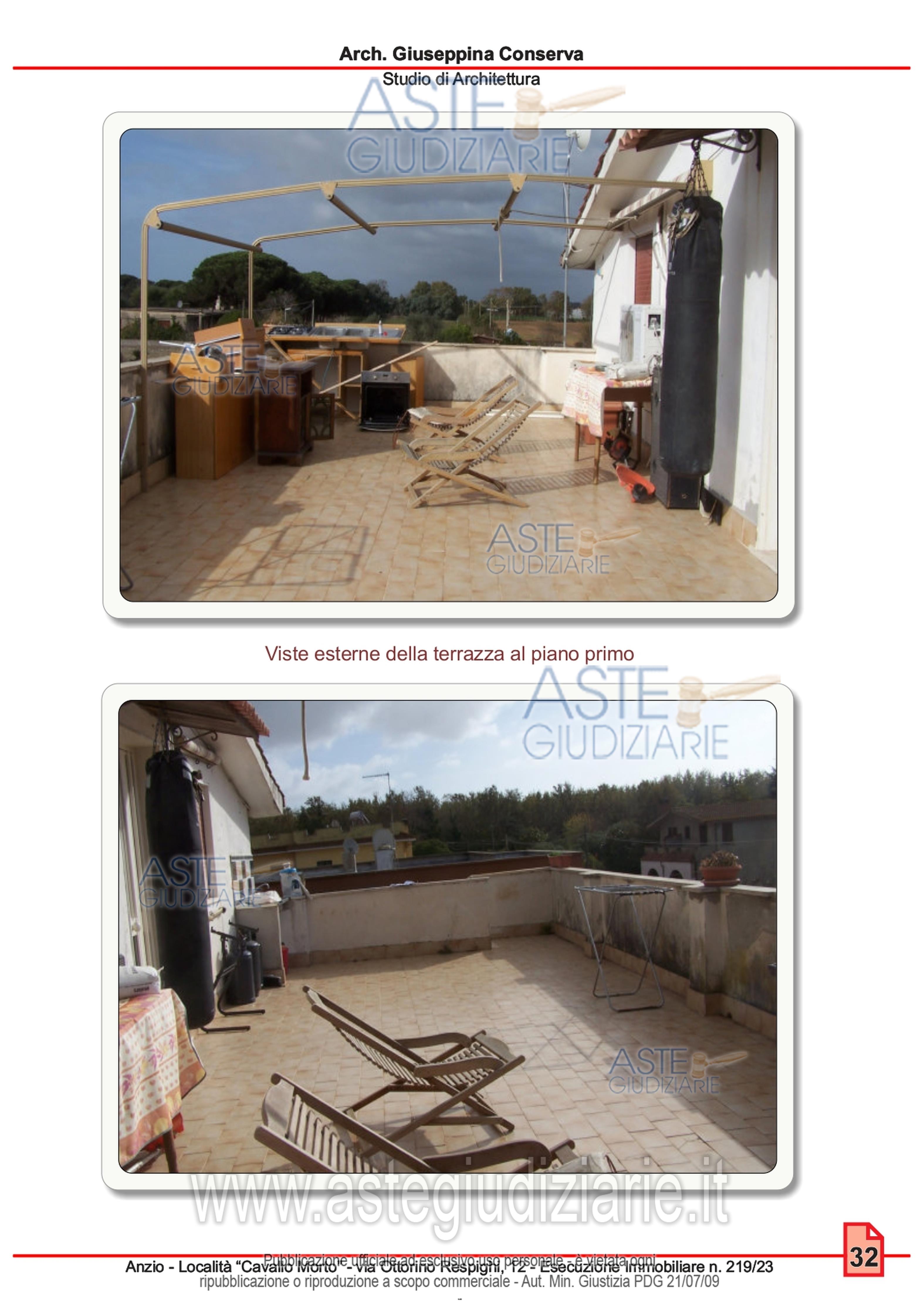 Vendita all'asta Senza incanto, con gara telematica asincrona - LOTTO Unico: Piena proprietà di appartamento sito in Anzio (RM), Via Ottorino Respighi n. 12, facente parte di un villino bifamiliare: situato al piano terra e primo, ciascuno con corte esclusiva (giardino. Prezzo base € 72.675,00 (offerta minima € 54.500,00). Data inizio operazioni di vendita: 08/01/2026 ore 10:00. Professionista delegato alla vendita Avv. Federica Amadio - Tel. 06/97654907. Custode Giudiziario Avv. Federica Amadio - Email "federica.amadio@studoilegaleamadio.com"; Tel. 0697654907. Rif. Tribunale di Velletri - Espropriazione immobiliare (cartabia) n. 219/2023