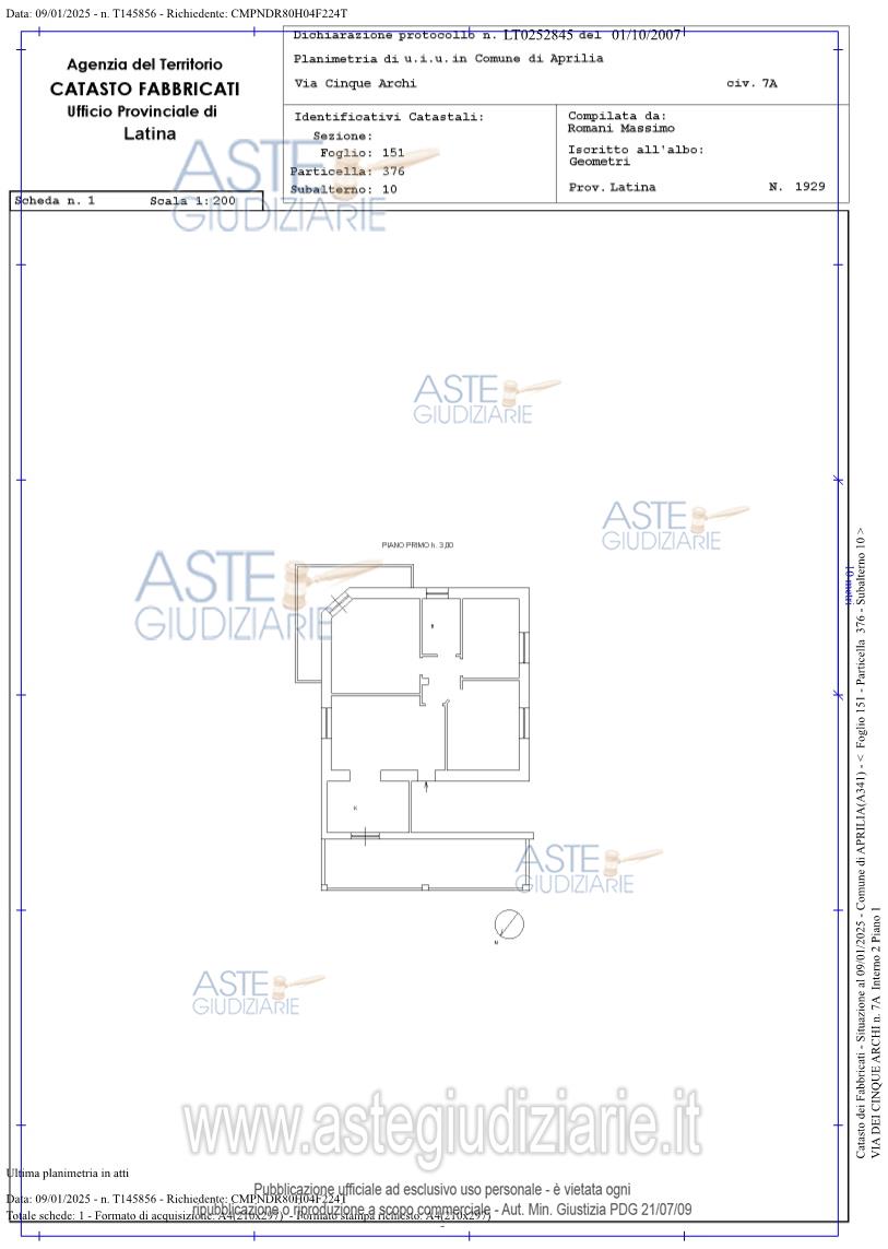 Vendita all'asta Senza incanto, con gara telematica asincrona - LOTTO UNICO: APPARTAMENTO AL PIANO PRIMO DI UN EDIFICIO DI TRE PIANI. Prezzo base € 90.800,00 (offerta minima € 68.100,00). Data inizio operazioni di vendita: 06/05/2026 ore 15:00. Professionista delegato alla vendita Avv. Monica Torrente - Email "torrente.monica@libero.it"; Cell. 3899917404. Custode Giudiziario Avv. Monica Torrente - Email "torrente.monica@libero.it"; Cell. 3899917404. Rif. Tribunale di Latina - Espropriazione immobiliare (cartabia) n. 298/2023