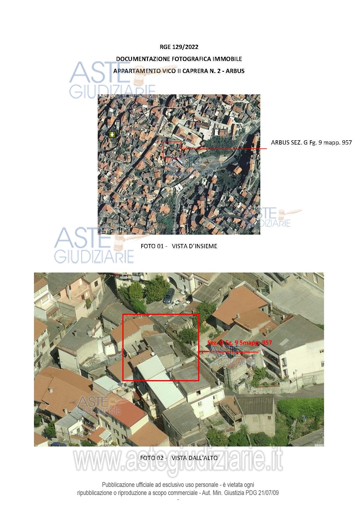Vendita all'asta Senza incanto, con gara telematica asincrona - LOTTO UNICO: In Comune di Arbus, appartamento indipendente ad uso civile abitazione su due piani fuori terra, avente accesso dal vico II Caprera n. 2, composto di: un soggiorno/ingresso, una camera/disimpegno con scala, una cucina, un bagno al piano terra; due camere da letto, un disimpegno, un bagno con accesso alla terrazza ed un piccolo balcone accessibile da una delle due camere da letto, al primo piano. Completa la consistenza dell’immobile un cortile di pertinenza esclusiva, antistante l’accesso dell’abitazione. Prezzo base € 36.000,00 (offerta minima € 27.000,00). Data inizio operazioni di vendita: 18/03/2026 ore 09:30. Giudice Valentina Frongia. Professionista delegato alla vendita Avv. Valeria Denotti - Email "avv.valeriadenotti@tiscali.it". Custode Giudiziario Ivg Cagliari - Email "ivg.visiteimmobili@tiscali.it"; Tel. 0702299036. Rif. Tribunale di Cagliari - Esecuzione immobiliare post legge 80 n. 129/2022