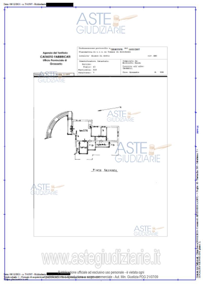 Vendita all'asta Senza incanto, con gara telematica sincrona mista - LOTTO 2: Intera proprietà costituita da:Appartamento di civile abitazione, mansarda 2° piano, posto in Loc. Giunco - comune di Arcidosso (GR) L’immobile è censito al Catasto Fabbricati del Comune di Arcidosso al foglio 43, part. 519, sub.7 (ex sub.3). Prezzo base € 32.300,00 (offerta minima € 24.225,00). Data vendita 26/11/2025 ore 12:00. Giudice Cristina Nicolò. Professionista delegato alla vendita Dott. Ilaria Brogi - Email "ILARIA.BROGI@STUDIOVENINATA.IT"; Tel. 3385637299. Custode Giudiziario Dott. Ilaria Brogi - Email "ILARIA.BROGI@STUDIOVENINATA.IT"; Tel. 3385637299. Rif. Tribunale di Grosseto - Esecuzione immobiliare post legge 80 n. 163/2019