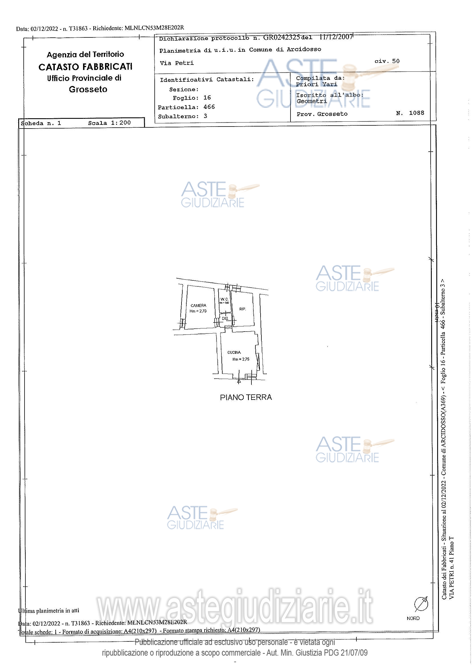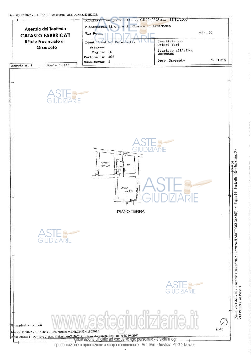 Vendita all'asta Senza incanto, con gara telematica asincrona - LOTTO UNICO: IMMOBILE USO RESIDENZIALE. Prezzo base € 20.000,00 (offerta minima € 15.000,00). Data inizio operazioni di vendita: 12/05/2026 ore 13:00. Professionista delegato alla vendita Avv. Alessio Scheggi - Email "alessioscheggi@gmail.com"; Cell. 3204635134; Tel. 05641886695. Custode Giudiziario Istituto Vendite Giudiziarie - Email "ivgpisa@astagiudiziaria.com"; Cell. 3426598791. Rif. Tribunale di Grosseto - Esecuzione immobiliare post legge 80 n. 1/2022