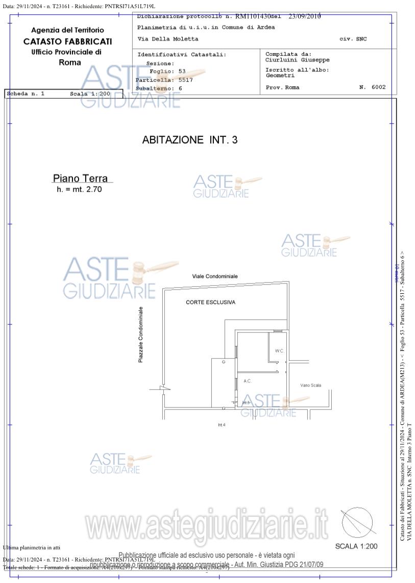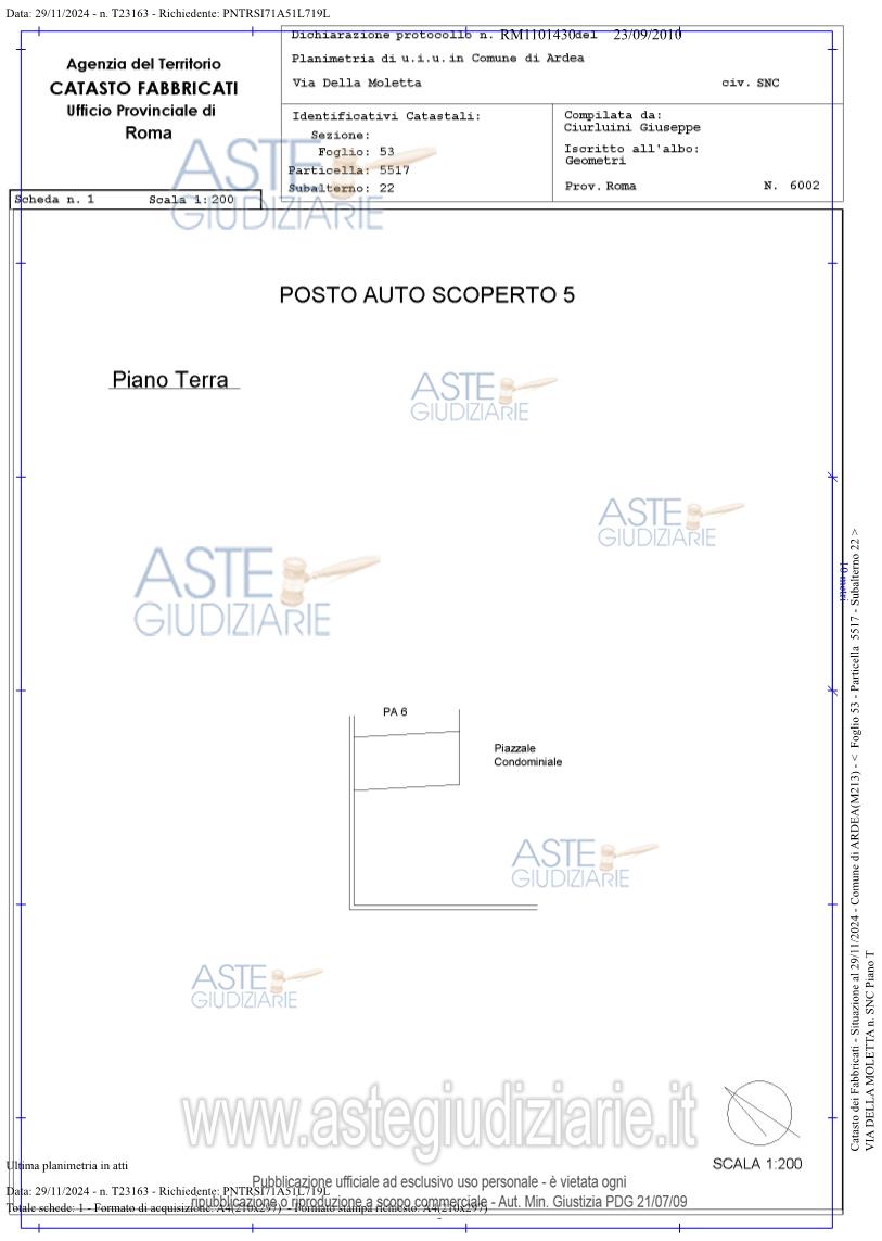 Vendita all'asta Senza incanto, con gara telematica asincrona - LOTTO UNICO: Appartamento interno 3 posto al piano rialzato composto da soggiorno con angolo cottura, camera, bagno, con annessa corte pertinenziale esterna, - posto auto scoperto n.2 al piano terra, all'interno del piazzale condominiale, - posto auto scoperto n.5, all'interno del piazzale condominiale, attualmente non utilizzabile. Prezzo base € 68.000,00 (offerta minima € 51.000,00). Data inizio operazioni di vendita: 04/12/2025 ore 09:30. Professionista delegato alla vendita Avv. Luana Guercini - Email "luanaguercini@live.it"; Cell. 3409179294; Tel. 0693667934. Custode Giudiziario Avv. Luana Guercini - Email "luanaguercini@live.it"; Cell. 3409179294; Tel. 0693667934. Rif. Tribunale di Velletri - Espropriazione immobiliare (cartabia) n. 242/2024