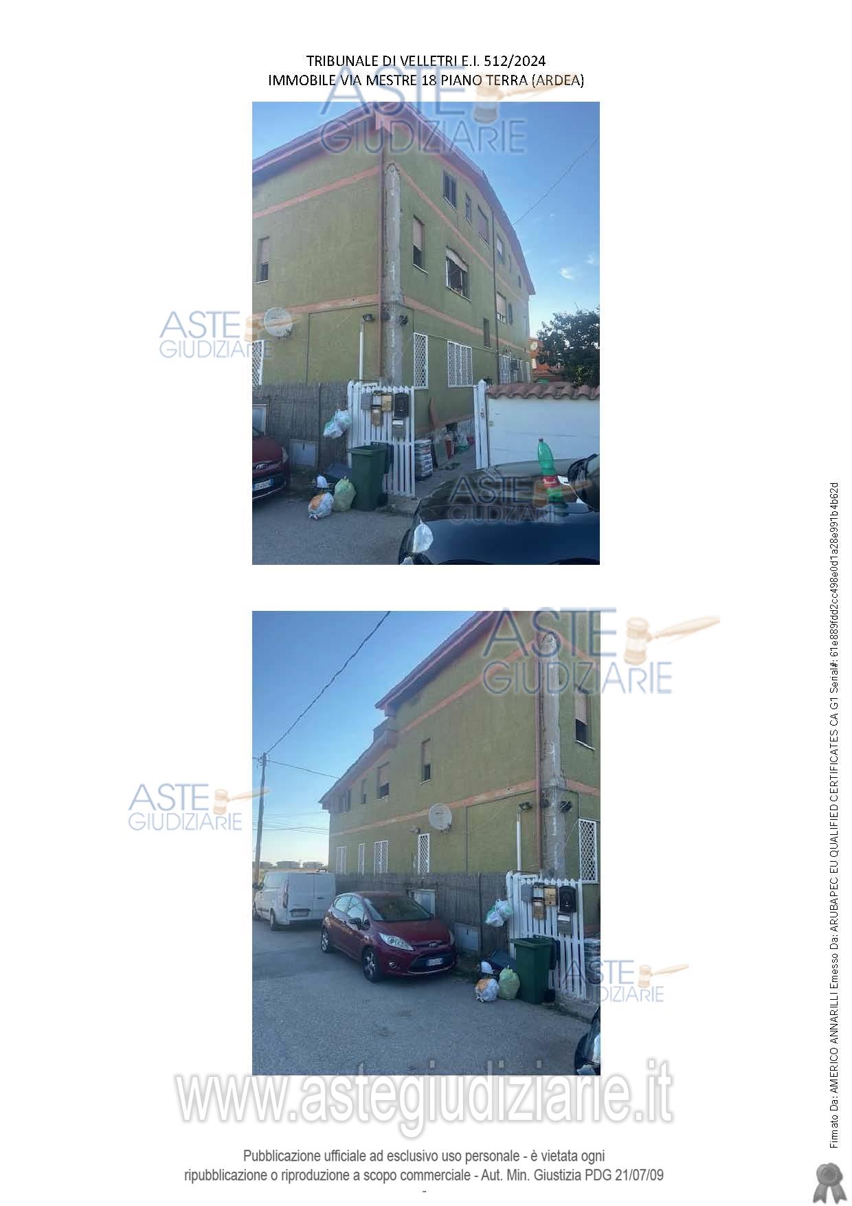 Vendita all'asta Senza incanto, con gara telematica asincrona - LOTTO UNICO: Appartamento posto al P-T facente parte di una palazzina plurifamiliare. Prezzo base € 94.500,00 (offerta minima € 70.875,00). Data inizio operazioni di vendita: 29/05/2026 ore 11:00. Professionista delegato alla vendita Avv. Adelaide Michela Laezza - Email "laezza.michela@libero.it"; Cell. 3203615218; Tel. 0689014502. Custode Giudiziario Avv. Adelaide Michela Laezza - Email "laezza.michela@libero.it"; Cell. 3203615218; Tel. 0689014502. Rif. Tribunale di Velletri - Espropriazione immobiliare (cartabia) n. 512/2024
