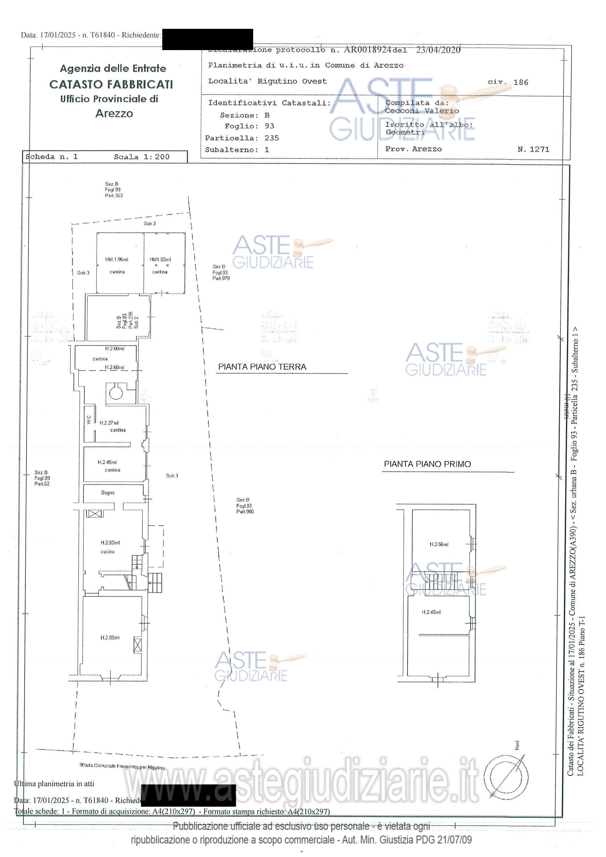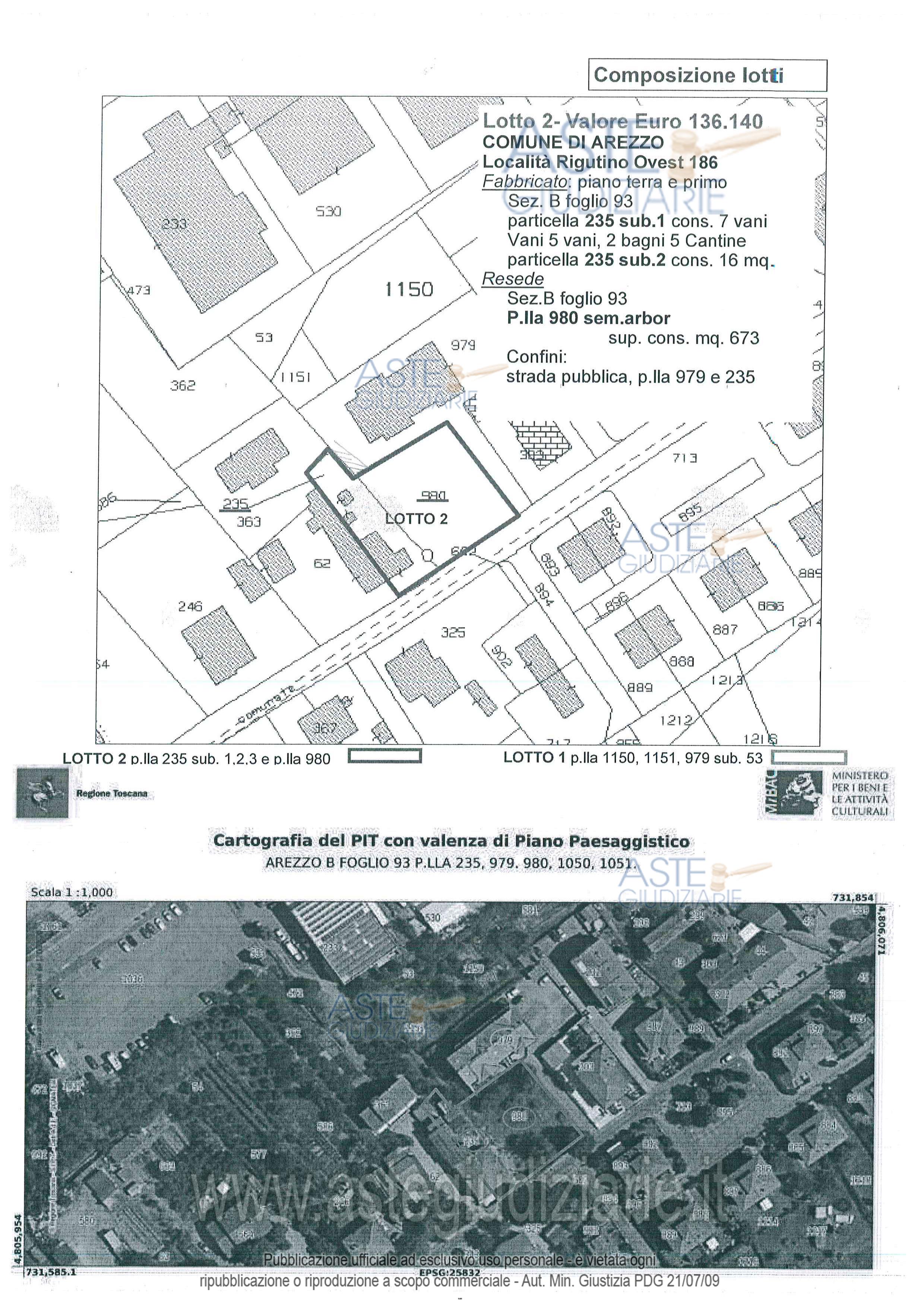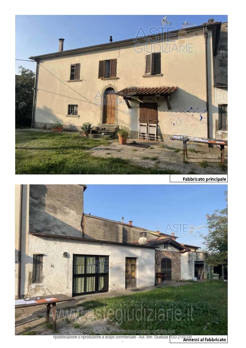 Vendita all'asta Senza incanto, con gara telematica sincrona mista - LOTTO UNICO: - fabbricato di civile abitazione, posto in aderenza ad altro fabbricato di proprietà altrui, ma con ingresso indipendente sulla via pubblica, sviluppato su due piani (terra e primo) collegati da una scala interna, composto al piano terreno da soggiorno, cucina bagno, cinque cantine, wc e al piano primo da tre camere;- garage - ampio resede pertinenziale. Prezzo base € 87.129,60 (offerta minima € 65.347,20). Data vendita 07/05/2026 ore 11:00. Giudice Elisabetta Rodinò Di Miglione. Professionista delegato alla vendita Avv. Miria Del Pace. Custode Giudiziario Avv. Istituto Vendite Giudiziarie Arezzo - Siena - Email "visite.ivg@gmail.com"; Cell. 3397337017; Tel. 0577318111. Rif. Tribunale di Arezzo - Espropriazione immobiliare (cartabia) n. 52/2023