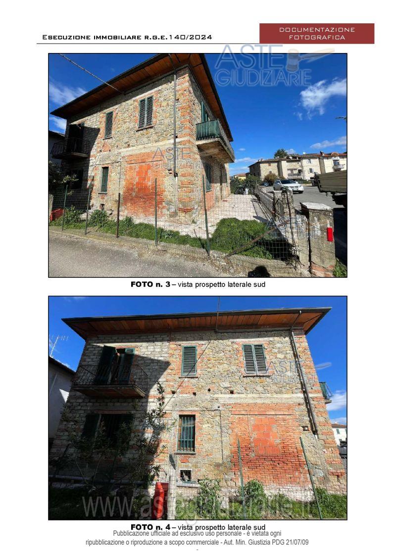 Vendita all'asta Senza incanto, con gara telematica sincrona mista - LOTTO UNICO: Abitazione unifamiliare che si sviluppa tre piani fuori terra senza porzioni interrate,. Prezzo base € 99.200,00 (offerta minima € 74.400,00). Data vendita 04/06/2026 ore 10:00. Professionista delegato alla vendita Avv. Roberta Avv Serboli - Email "roberta.serboli@gmail.com"; Tel. 0575911991. Custode Giudiziario Avv. Istituto Vendite Giudiziarie Arezzo - Siena - Email "visite.ivg@gmail.com"; Cell. 3397337017; Tel. 0577318111. Rif. Tribunale di Arezzo - Esecuzione immobiliare post legge 80 n. 140/2024