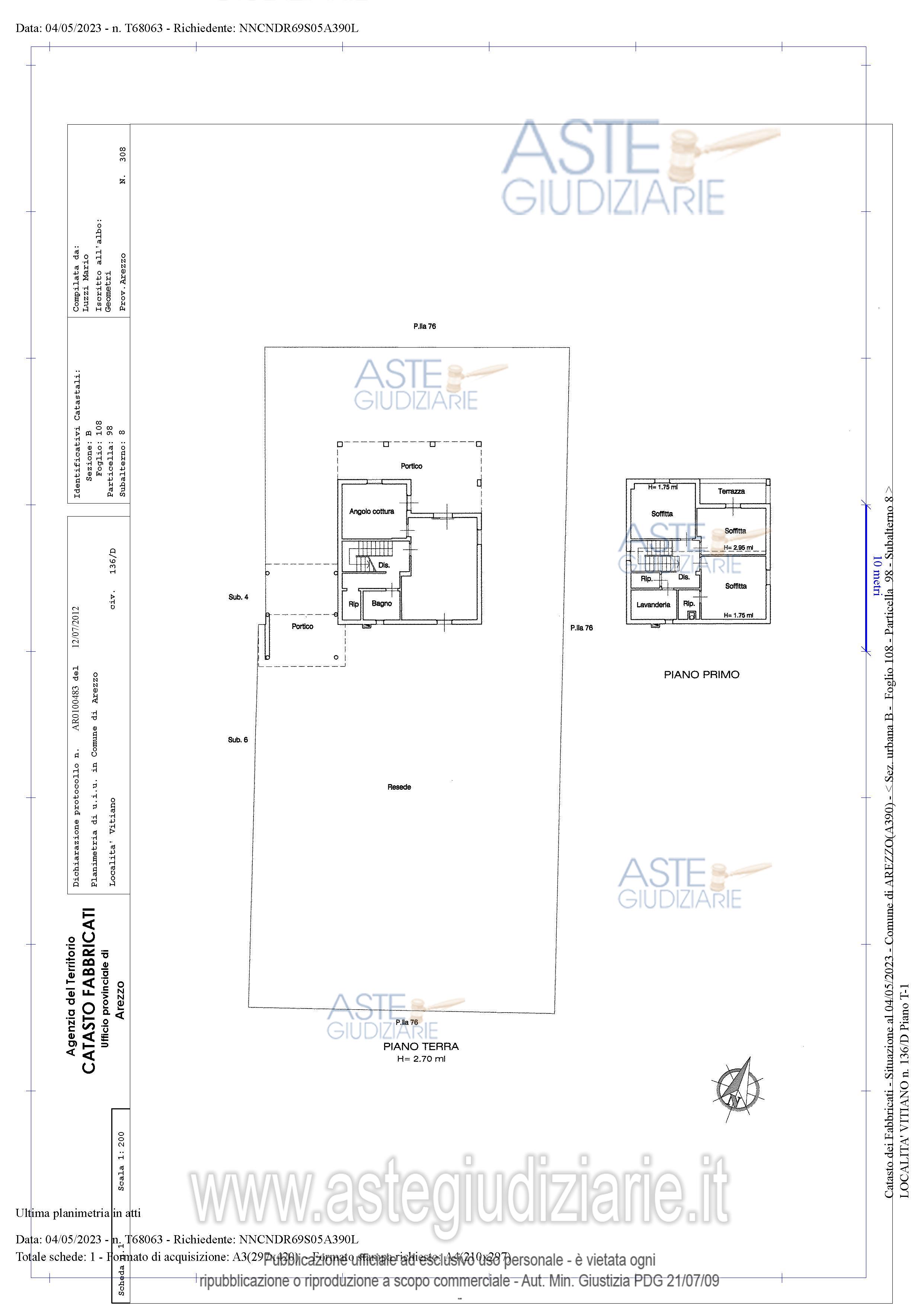 Vendita all'asta Senza incanto, con gara telematica sincrona mista - LOTTO UNICO: Fabbricato indipendente, ad uso residenziale, posto in Comune di Arezzo, loc. Vitiano n. 136/D, composto: - al piano terra da soggiorno, cucina, disimpegno, ripostiglio, bagno, due portici e pertinente resede, al piano primo/sottotetto da tre locali soffitta, disimpegno, lavanderia, due ripostigli e terrazza. Prezzo base € 205.600,00 (offerta minima € 154.200,00). Data vendita 16/04/2026 ore 13:00. Giudice Elisabetta Rodinò Di Miglione. Professionista delegato alla vendita Not. Roberto Pisapia - Email "rpisapia@notariato.it"; Tel. 055980723. Custode Giudiziario Avv. Istituto Vendite Giudiziarie Arezzo-Siena - Email "visite.ivg@gmail.com"; Cell. 3397337017; Tel. 0577318111. Rif. Tribunale di Arezzo - Esecuzione immobiliare post legge 80 n. 175/2022