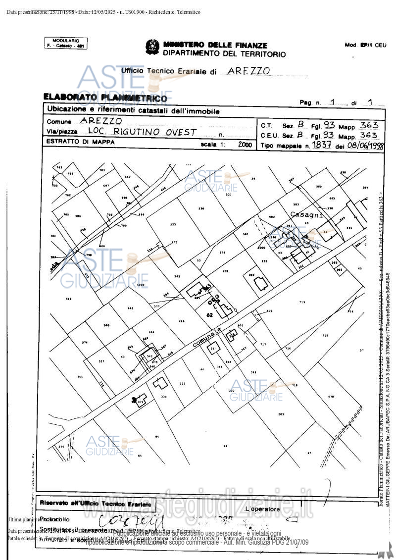 Vendita all'asta Senza incanto, con gara telematica sincrona mista - LOTTO UNICO: Diritto di piena proprietà per l’intero su di un fabbricato singolo sito in Arezzo (AR), Rigutino Ovest 187/A, frazione Rigutino. Il bene è costituito da un immobile monofamiliare, con annesso resede di pertinenza esterno ed è composto dall’unità residenziale posta a piano interrato, terra, primo, soffitta, oltre a garage a piano terra. Prezzo base € 194.720,00 (offerta minima € 146.040,00). Data vendita 04/06/2026 ore 09:00. Professionista delegato alla vendita Dott. Luca Varignani - Email "luca.varignani@studiovarignani.com"; Cell. 3393459030; Tel. 0575381125. Custode Giudiziario Istituto Vendite Giudiziarie Arezzo Siena - Email "visite.ivg@gmail.com"; Cell. 3397337017; Tel. 0577318111. Rif. Tribunale di Arezzo - Espropriazione immobiliare (cartabia) n. 69/2024