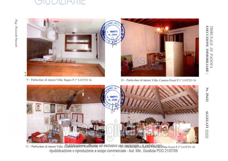 Vendita all'asta Senza incanto, con gara telematica sincrona - LOTTO 16: Villa storica di impianto cinquecentesco sviluppata su tre piani fuori terra. Al PT si compone di: atrio, soggiorno, n.2 sale da pranzo, cottura, W.C., ripostiglio, disbrigo, vano scala. Al P1: disimpegno, n.4 camere, n.2 bagni ciascuno con antibagno, vano scala, n.2 poggioli. Al P2: n.2 camere, un bagno con antibagno, n.2 soffitte, vano scala. Separatamente, all'esterno, garage e deposito. Estesa area scoperta comune adibita a giardino. Superficie commerciale complessiva mq 645,29. Prezzo base € 125.000,00 (offerta minima € 93.750,00). Data vendita 04/02/2026 ore 11:00. Giudice Giovanni G Amenduni. Professionista delegato alla vendita Avv. Luca Voltan - Email "avv.lucavoltan@gmail.com"; Tel. 0498307023. Custode Giudiziario Avv. Luca Voltan - Email "avv.lucavoltan@gmail.com"; Tel. 0498307023. Rif. Tribunale di Padova - Esecuzione immobiliare post legge 80 n. 254/2021