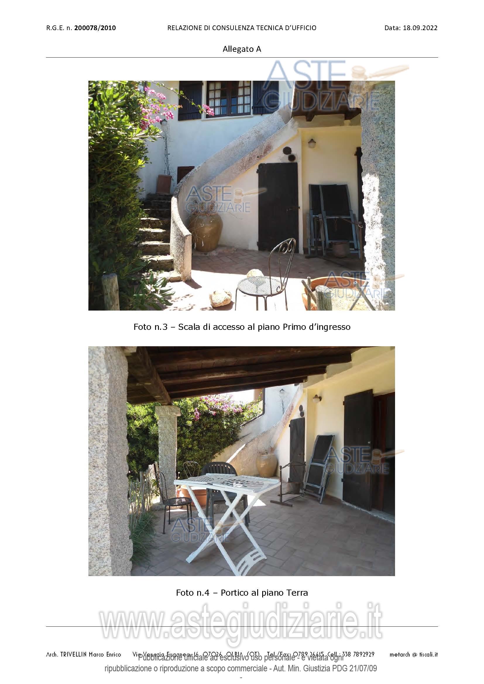Vendita all'asta Senza incanto, con gara telematica asincrona - LOTTO UNICO: Piena proprietà quota 1/1 dell’unità immobiliare sita in Arzachena (SS), località Lu Cumitoni, distinta al Catasto Fabbricati come Particella 671 del Foglio 11, categoria A2, classe 2, consistenza 8,5 vani, superficie catastale 212 mq (211 mq escluse aree scoperte), rendita Euro 1.119,42, come meglio identificato nella relazione di stima e relativi allegati a firma dell’esperto stimatore. Si rinvia alla perizia dell’esperto stimatore per ulteriori dettagli anche in relazione alle difformità riscontrate. Prezzo base € 460.800,00 (offerta minima € 345.600,00). Data inizio operazioni di vendita: 25/11/2025 ore 16:00. Giudice Antonia Palombella. Professionista delegato alla vendita Dott. Stefano Chiodino - Email "stefanochiodino@gmail.com"; Tel. 078924463. Custode Giudiziario Ivg Tempio Pausania - Email "visite.ivgtempio@gmail.com"; Tel. 079630505. Rif. Tribunale di Tempio Pausania - Esecuzione immobiliare post legge 80 n. 200078/2010