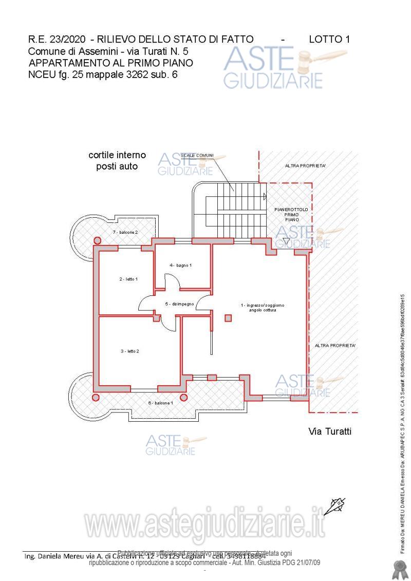Vendita all'asta Senza incanto, con gara telematica asincrona - LOTTO 1: LOTTO 1: quota pari a 1/1 del diritto di PROPRIETA’ sull’appartamento sito a ASSEMINI, via Turati n. 5,piano primo e posto auto, identificato al NCEU del predetto Comune al foglio 25 part. 3262 sub. 6 categ. A/3Classe 3, vani 4,5, sup. catastale mq. 90, rendita euro 290,51. Prezzo base € 73.000,00 (offerta minima € 54.750,00). Data inizio operazioni di vendita: 19/05/2026 ore 16:00. Professionista delegato alla vendita Dott. Elena Loddo - Email "studioelenaloddo@gmail.com"; Tel. 0707967825. Custode Giudiziario Ivg Cagliari - Email "ivg.visiteimmobili@tiscali.it"; Tel. 0702299036. Rif. Tribunale di Cagliari - Esecuzione immobiliare post legge 80 n. 23/2020