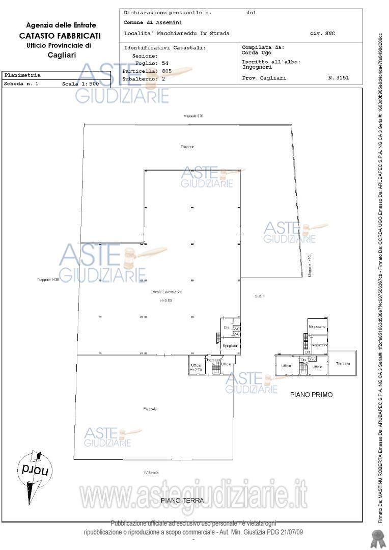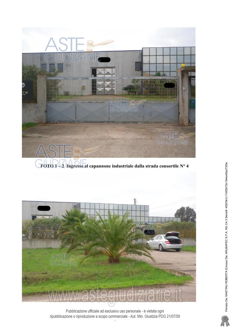 Vendita all'asta Senza incanto, con gara telematica asincrona - LOTTO UNICO: Assemini: quota pari a 1/1 del diritto di proprietà di unità immobiliare sita in Comune di Assemini, Zona Industriale Macchiareddu – Grogastu – IV strada Est – area CACIP (ex CASIC), costituita da capannone industriale con annessi uffici e casa custode - categoria A/2, consistenza 7 vani e categoria D/7. Prezzo base € 384.122,00 (offerta minima € 288.092,00). Data inizio operazioni di vendita: 05/02/2026 ore 11:00. Giudice Silvia Cocco. Professionista delegato alla vendita Dott. Edoardo Sanna - Email "studioedoardosanna@gmail.com"; Tel. 070490790. Custode Giudiziario Ivg Cagliari - Email "ivg.visiteimmobili@tiscali.it"; Tel. 0702299036. Rif. Tribunale di Cagliari - Esecuzione immobiliare post legge 80 n. 40/2013