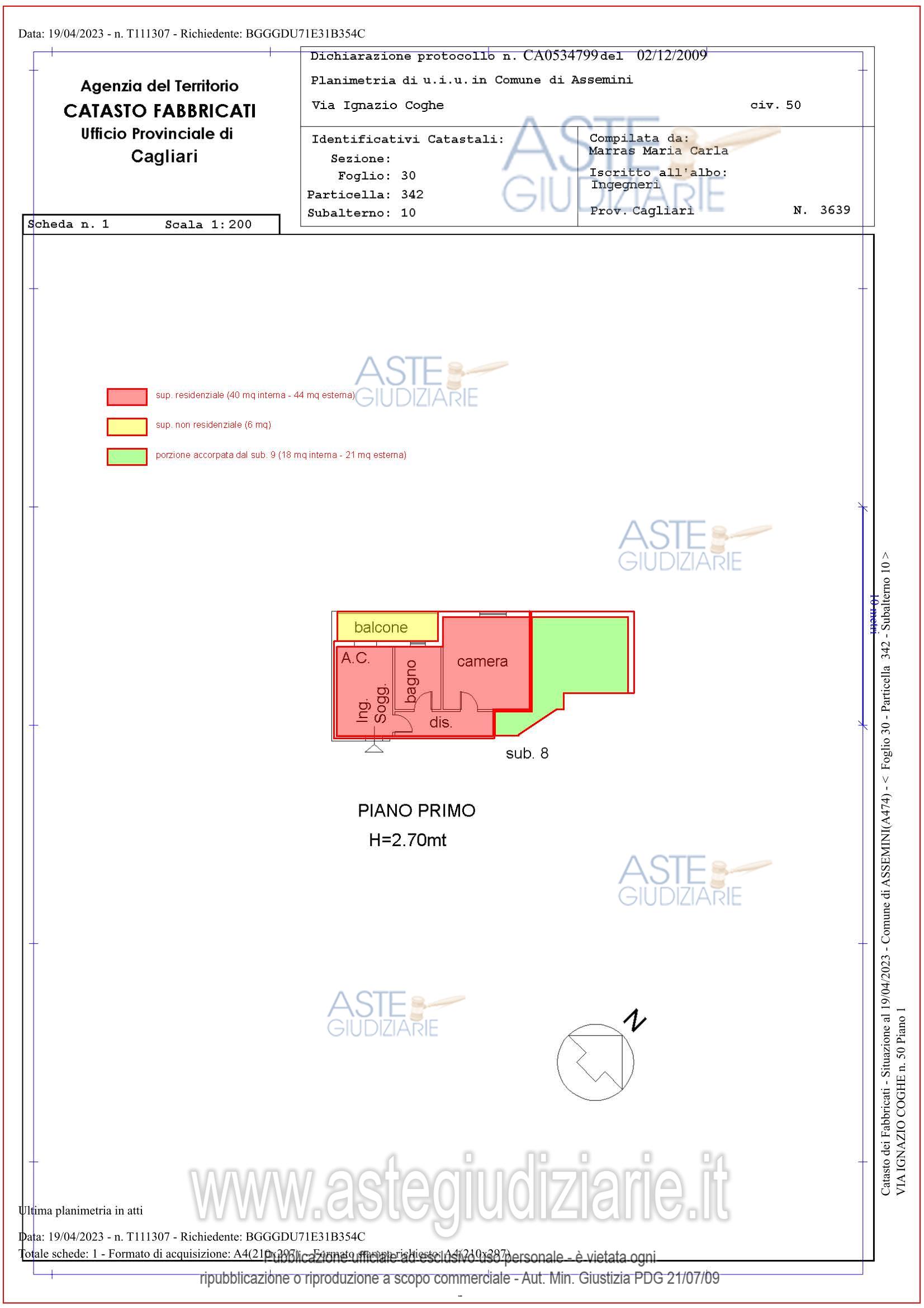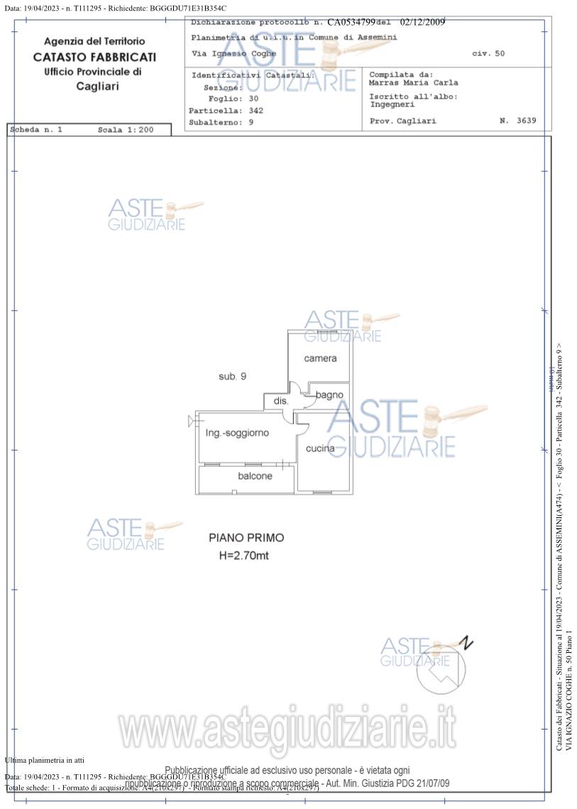 Vendita all'asta Senza incanto, con gara telematica asincrona - LOTTO UNICO: LOTTO UNICO: n°2 appartamenti siti nel Comune di Assemini di cui uno individuato nel NCEU al foglio 30, particella 342, subalterno 9 (appartamento ad uso civile abitazione sito al piano primo con accesso dalla via Ignazio Coghe n°50C, 4 vani, categoria A/2, classe 7, superficie catastale totale 87 mq) e uno al subalterno 10 (appartamento ad uso civile abitazione sito al piano primo con accesso dalla via Ignazio Coghe n°50C, 2,5 vani, categoria A/2, superficie catastale totale 47 mq,). Prezzo base € 126.400,00 (offerta minima € 94.800,00). Data inizio operazioni di vendita: 26/03/2026 ore 15:30. Professionista delegato alla vendita Rag. Matteo Deidda Gagliardo - Email "matteo.deiddagagliardo@gmail.com"; Tel. 070501685. Custode Giudiziario Ivg Cagliari - Email "ivg.visiteimmobili@tiscali.it"; Tel. 0702299036. Rif. Tribunale di Cagliari - Esecuzione immobiliare post legge 80 n. 67/2019