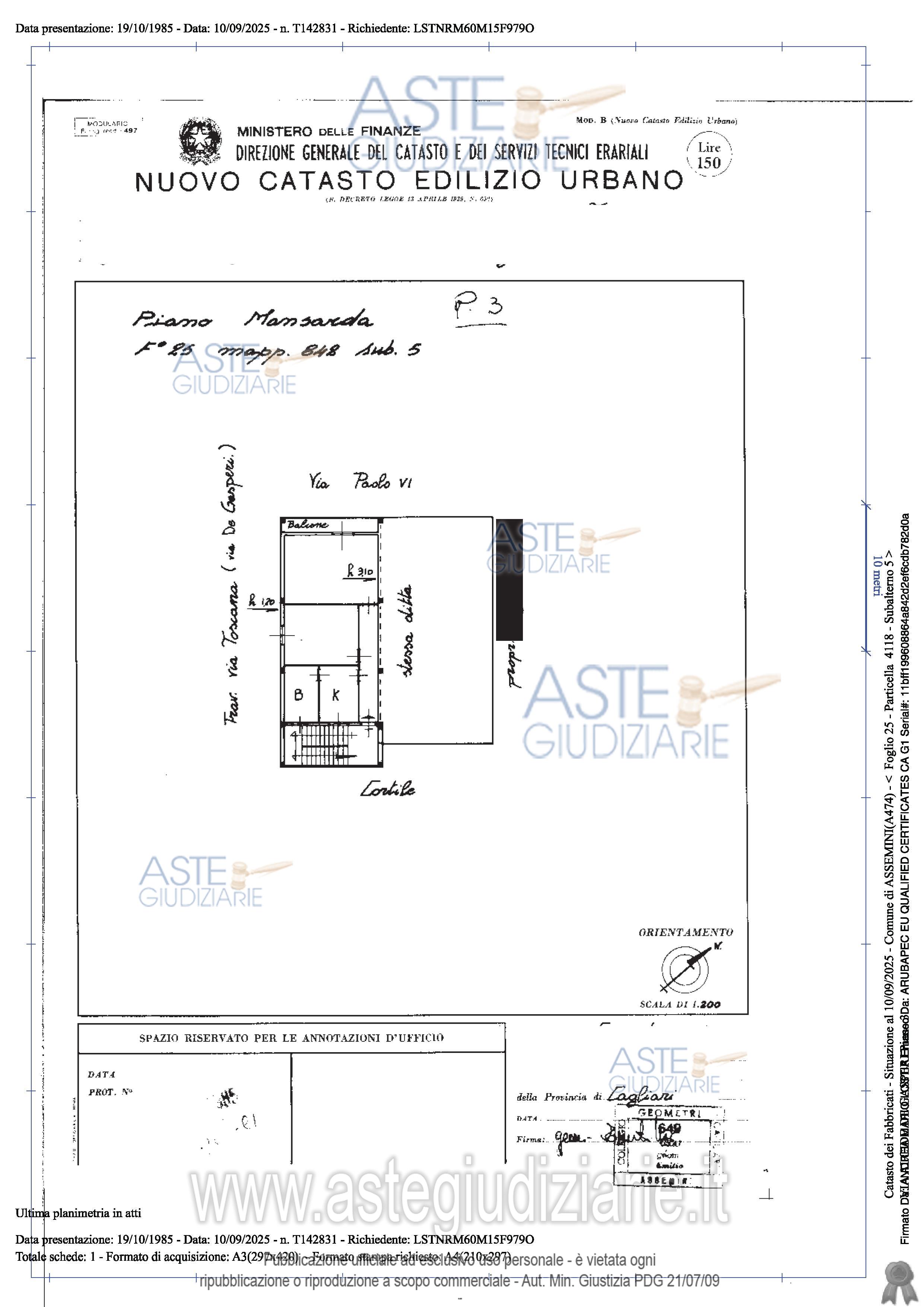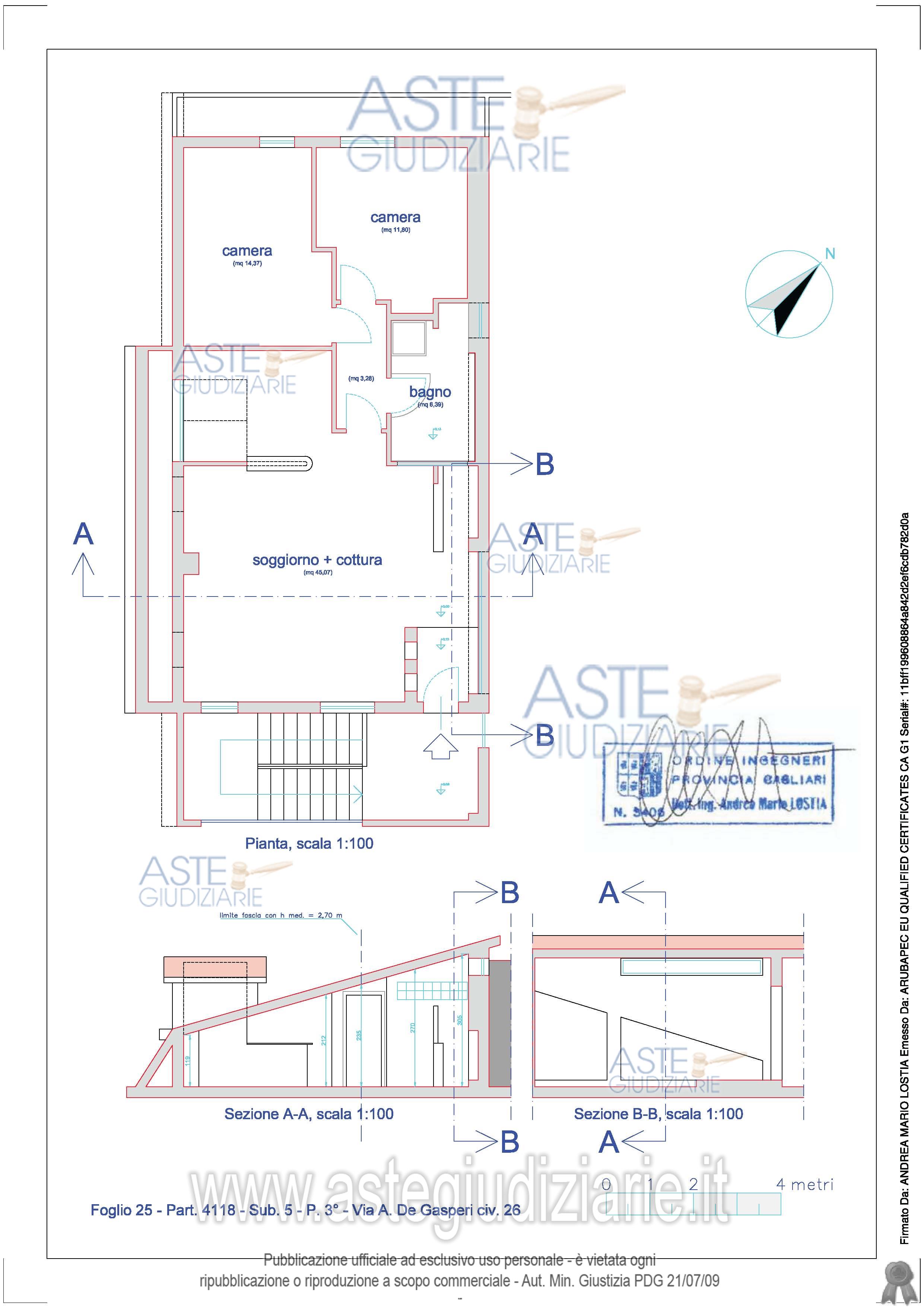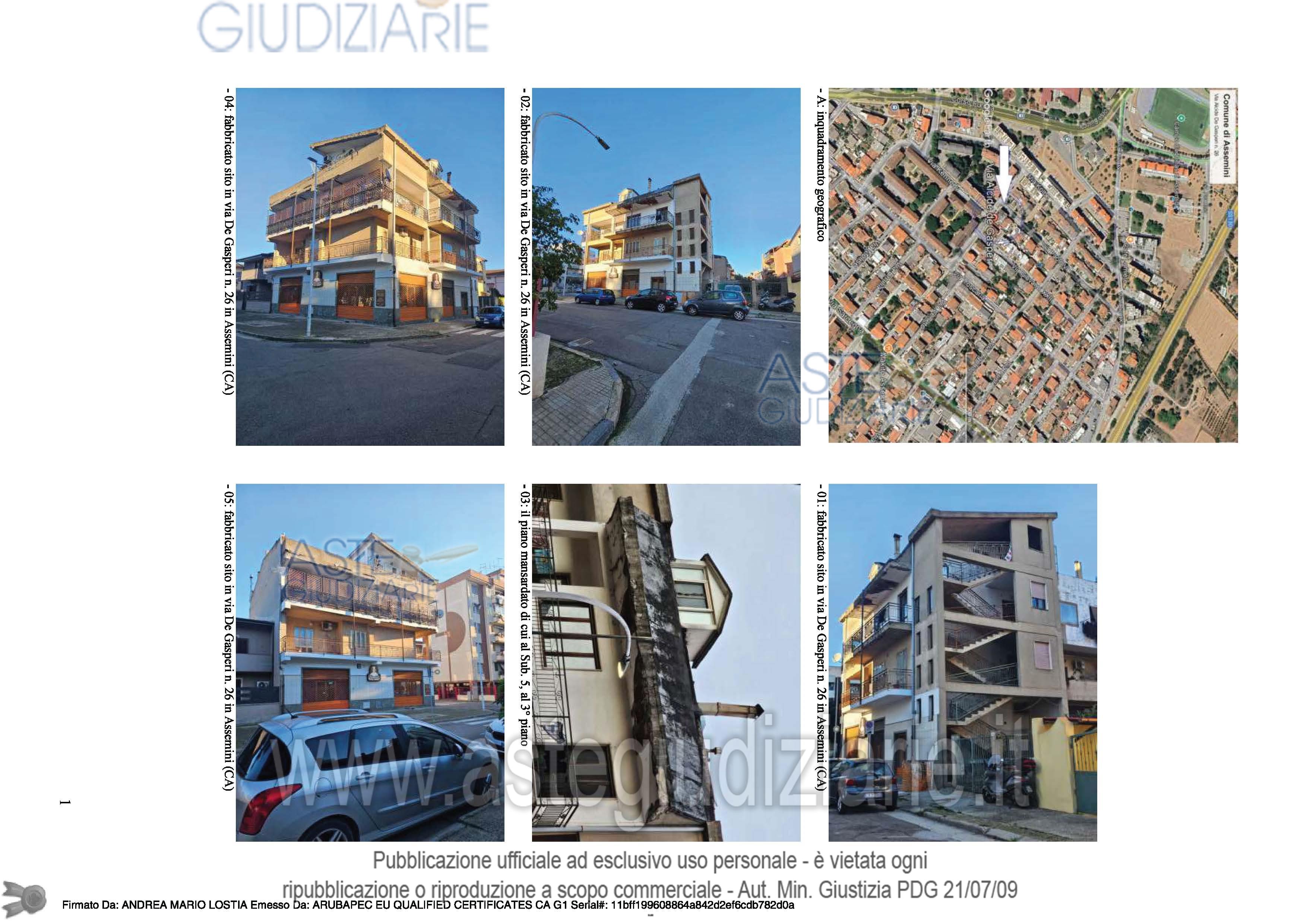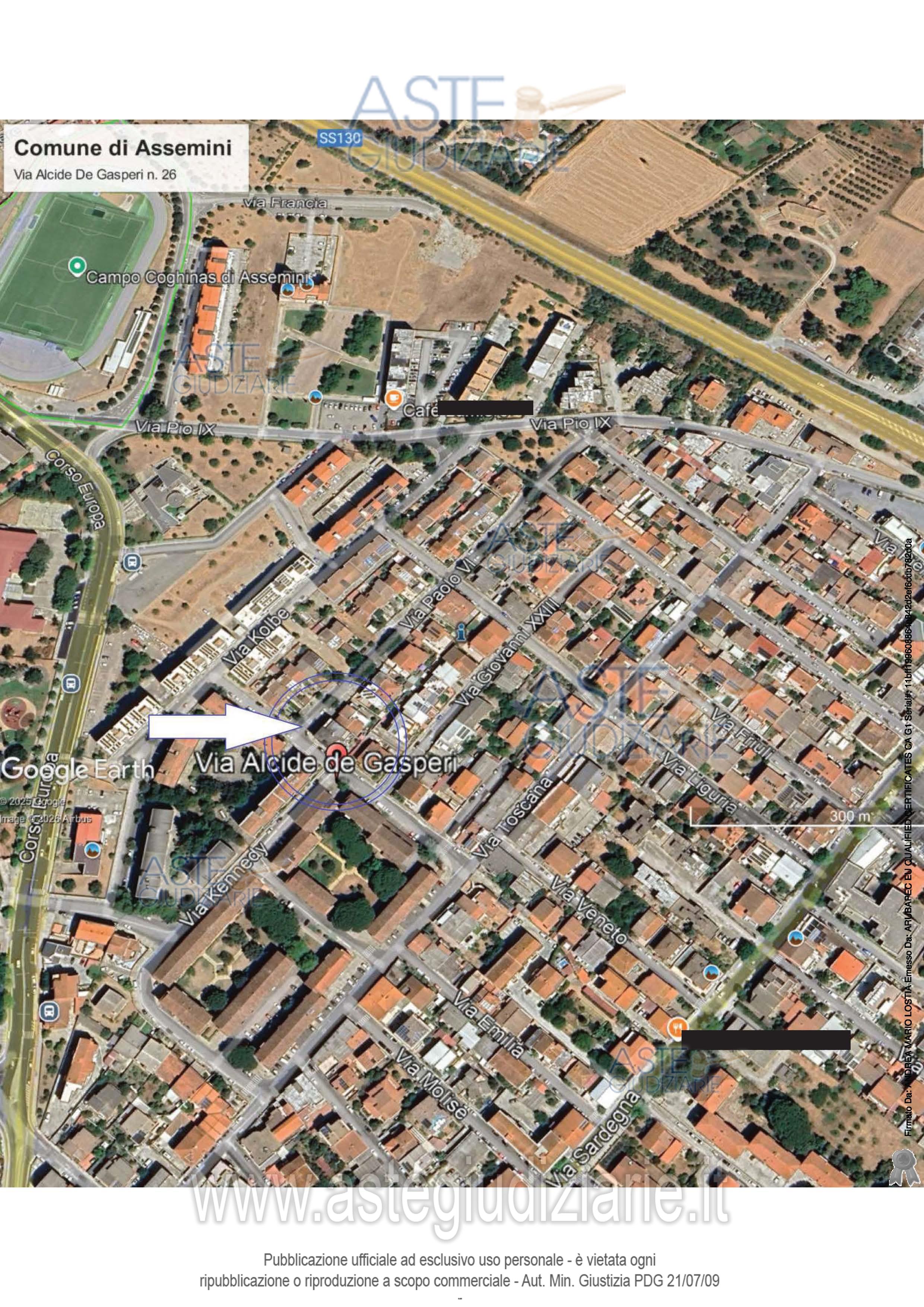 Vendita all'asta Senza incanto, con gara telematica asincrona - LOTTO 1: Quota pari a 1/1 del diritto di proprietà sull’appartamento sito a Assemini, categoria A/3, identificato al Catasto Fabbricati del predetto Comune al foglio 25 part. 4118 sub. 5, Via Alcide De Gasperi n. 26, piano 3.
