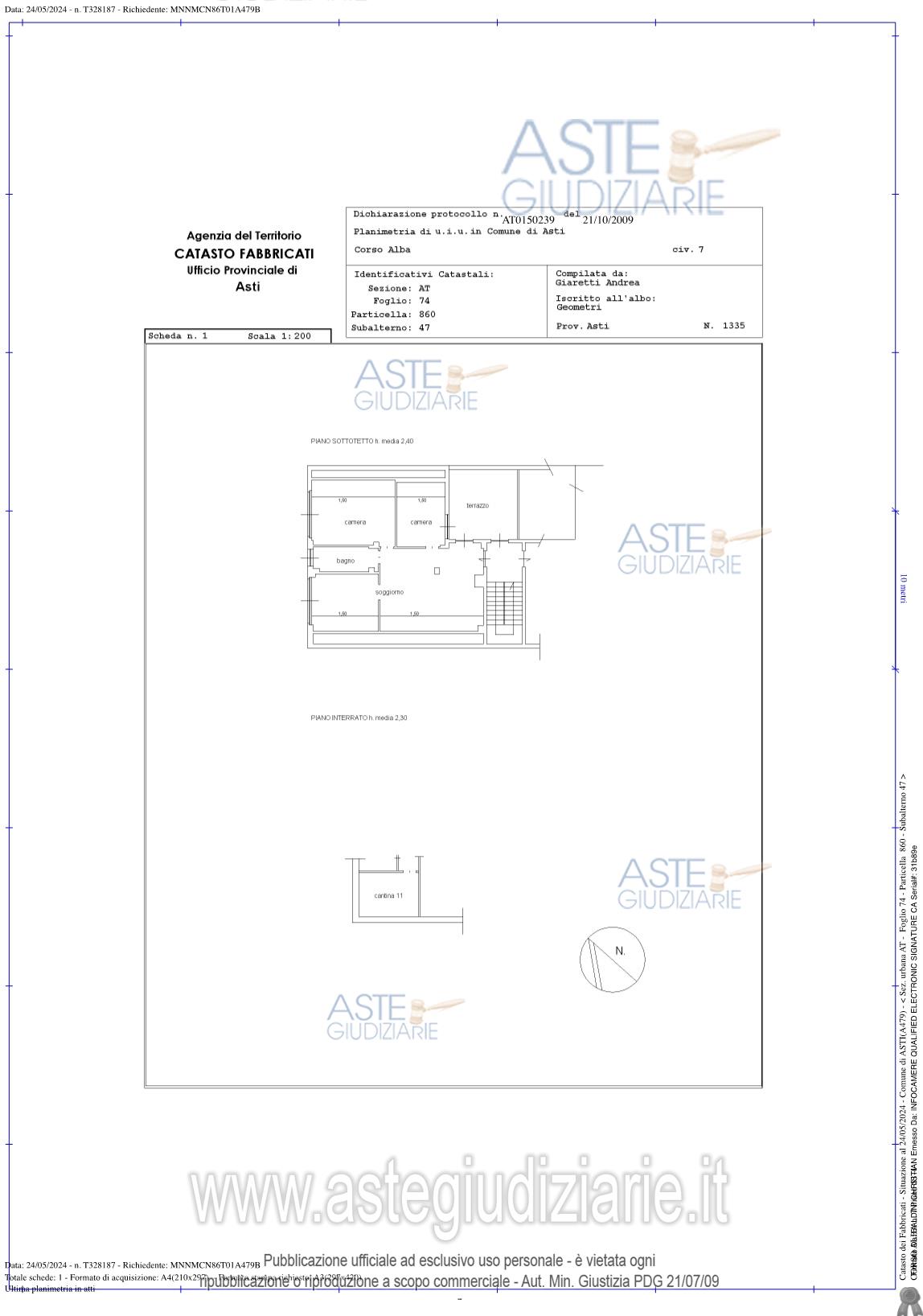 Vendita all'asta Senza incanto, con gara telematica asincrona - LOTTO UNICO: Piena proprietà di appartamento mansardato composto da soggiorno, due camere, bagno, terrazzo e cantina. Prezzo base € 43.000,00 (offerta minima € 32.250,00). Data inizio operazioni di vendita: 11/11/2025 ore 09:30. Giudice Giuseppe Amoroso. Professionista delegato alla vendita Avv. Elisa Alfero - Email "elisa.alfero@gmail.com". Custode Giudiziario Ifir Piemonte Ivg Srl - Email "richiestevisite.asti@ivgpiemonte.it". Rif. Tribunale di Asti - Esecuzione immobiliare post legge 80 n. 195/2021