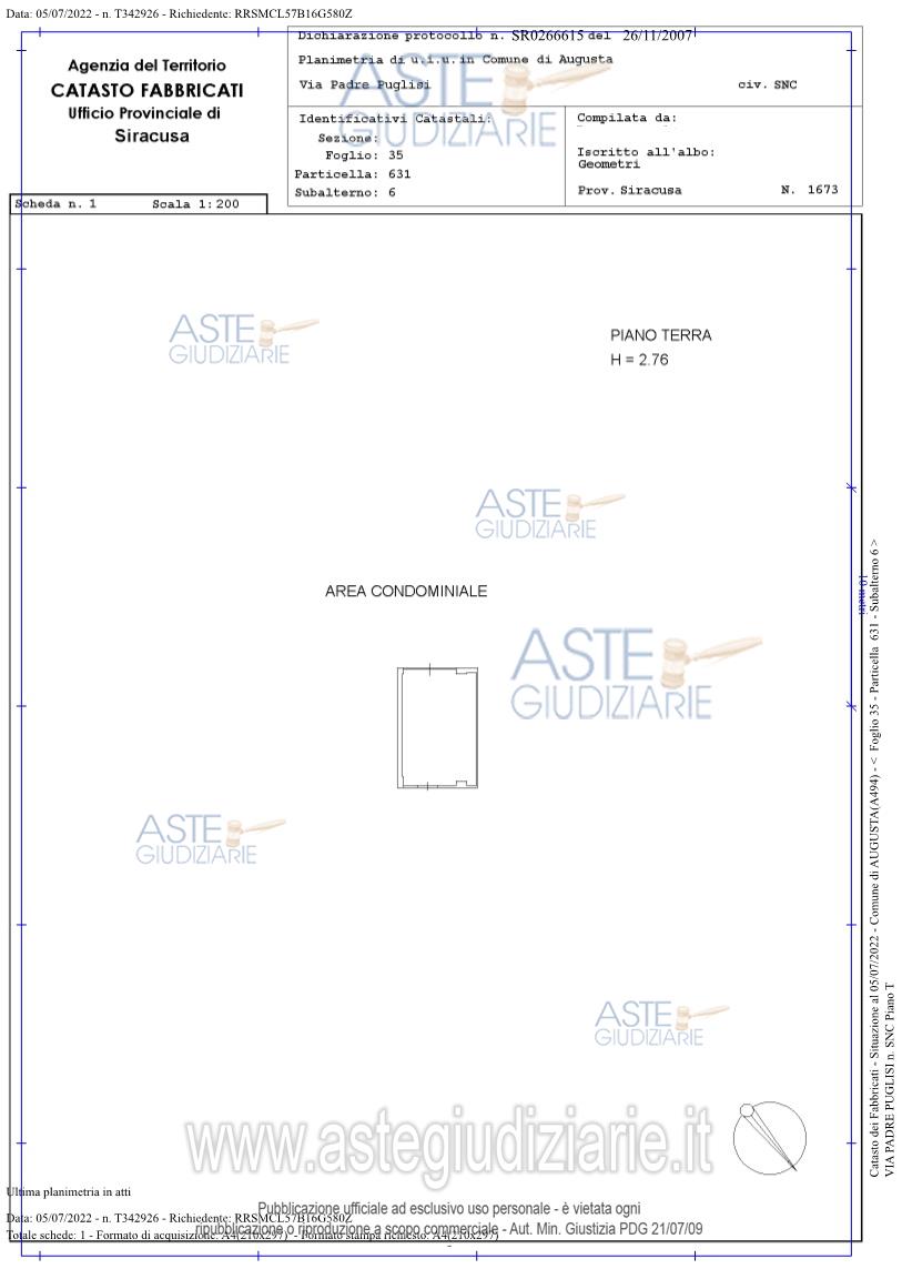 Vendita all'asta Senza incanto, con gara telematica sincrona mista - LOTTO UNICO: appartamento sito nel Comune di Augusta, via Padre Puglisi n.15, scala A, piano primo, garage di pertinenza distinto in catasto fabbricati al Fg. 35, p.lla 631, sub. 6, cat. C/6, superficie catastale 20 mq. Prezzo base € 97.875,00 (offerta minima € 73.406,25). Data vendita 03/03/2026 ore 09:00. Professionista delegato alla vendita Avv. Milena Mangiafico - Email "milenamangiafico@libero.it"; Cell. 3926390985. Custode Giudiziario Avv. Milena Mangiafico - Email "milenamangiafico@libero.it"; Cell. 3926390985. Rif. Tribunale di Siracusa - Esecuzione immobiliare post legge 80 n. 302/2019