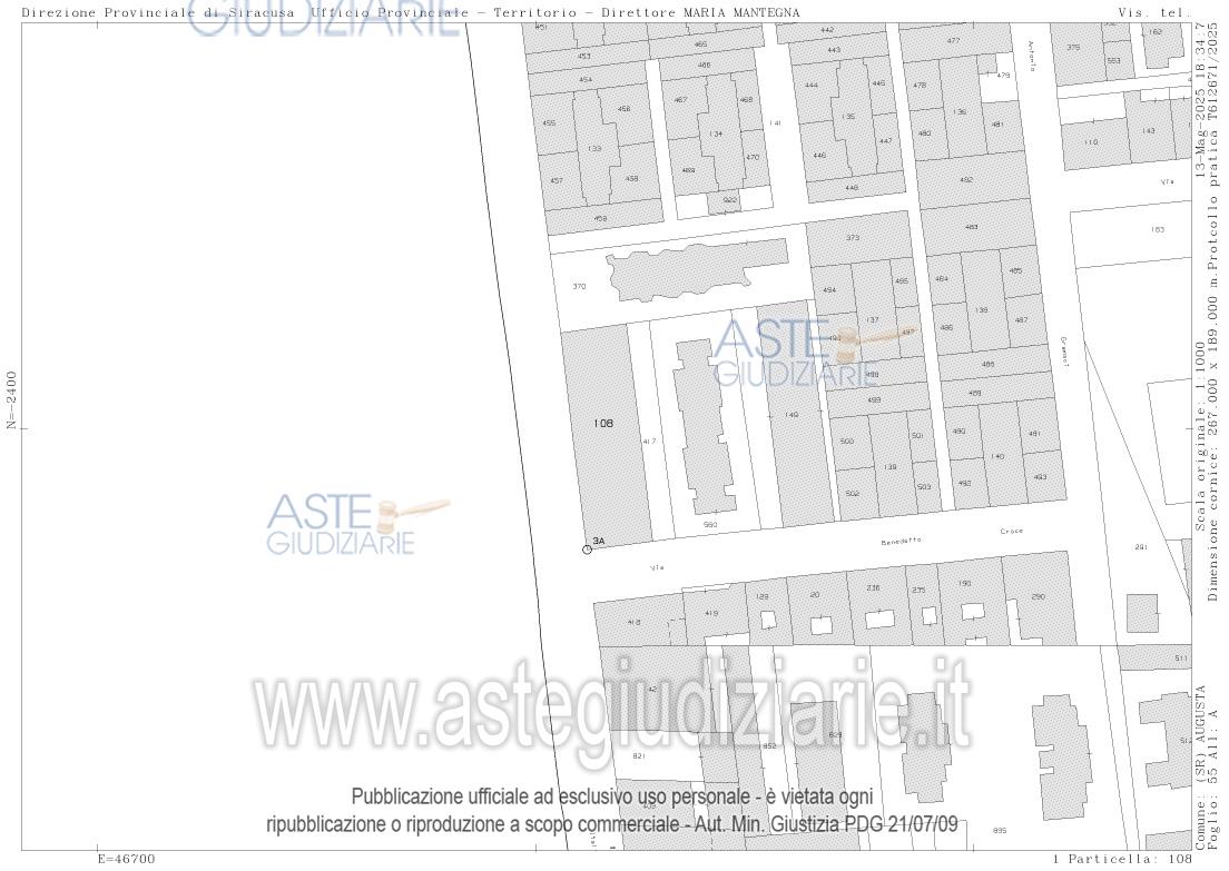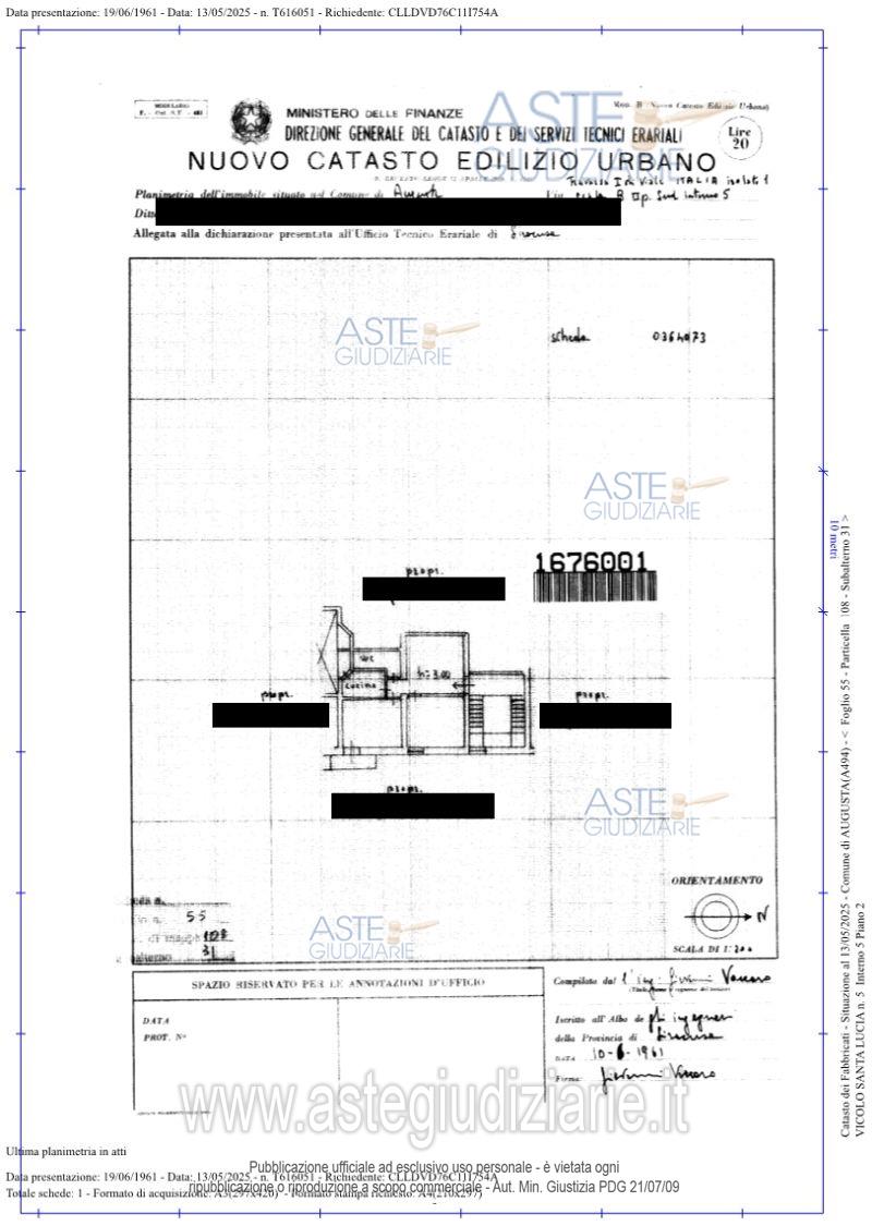 Vendita all'asta Senza incanto, con gara telematica sincrona mista - LOTTO UNICO: immobile sito in Augusta, vicolo Santa Lucia, 20, int. 5, piano 2, cat. A/4, vani 4, censito al foglio 55, particella 108, sub.31 r. c. euro 171,46, superficie catastale 72 mq.