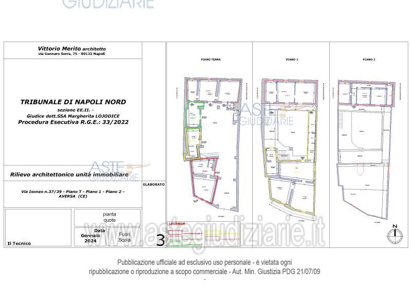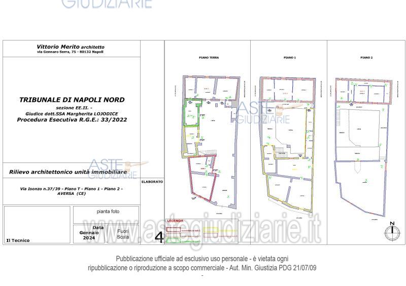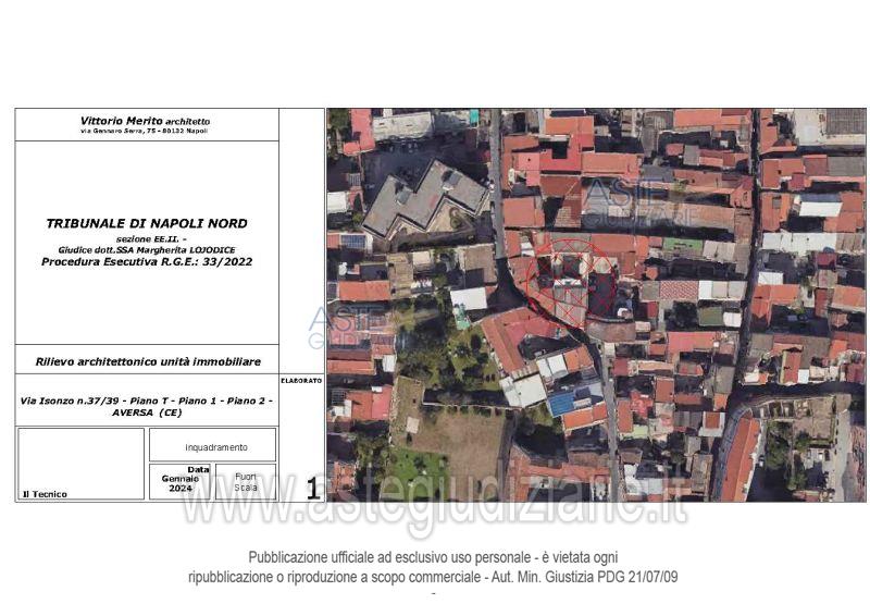 Vendita all'asta Senza incanto, con gara telematica asincrona - LOTTO UNICO: Piena ed intera proprietà di un edificio a corte di tre piani fuori terra, ubicato nel centro storico del Comune di Aversa (CE) alla Via Isonzo n. 37-39, composto da cinque cespiti, di cui quattro che, nello stato di fatto, risultano fusi tra loro oltre sottotetto e due terrazzi. . Prezzo base € 529.000,00 (offerta minima € 396.750,00). Data inizio operazioni di vendita: 25/11/2025 ore 16:30. Professionista delegato alla vendita Avv. Giorgia Viola - Email "avv.giorgiaviola@libero.it"; Tel. 08118858628. Custode Giudiziario Avv. Giorgia Viola - Email "avv.giorgiaviola@libero.it"; Tel. 08118858628. Rif. Tribunale di Napoli Nord - Esecuzione immobiliare post legge 80 n. 33/2022