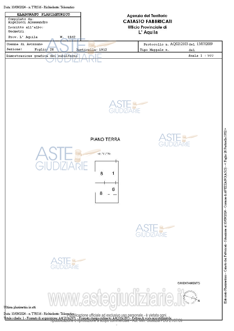 Vendita all'asta Senza incanto, con gara telematica asincrona - LOTTO 1: Wohnung von etwa 57 m² Bruttogesamtfläche, befindet sich im Erdgeschoss und besteht aus: Küche/Wohnzimmer, einem Schlafzimmer, einem Badezimmer, einem Flur/Eingangsbereich, alles in schlechtem Instandhaltungszustand, sowie einem exklusiven Außenhof von ca. 27,00 m². Prezzo base € 14.224,00 (offerta minima € 10.668,00). Data inizio operazioni di vendita: 10/12/2025 ore 11:30. Curatore Dott. Giuseppe Petracca. Rif. Tribunale di Avezzano - Liquidazione giudiziale(cci) n. 7/2023