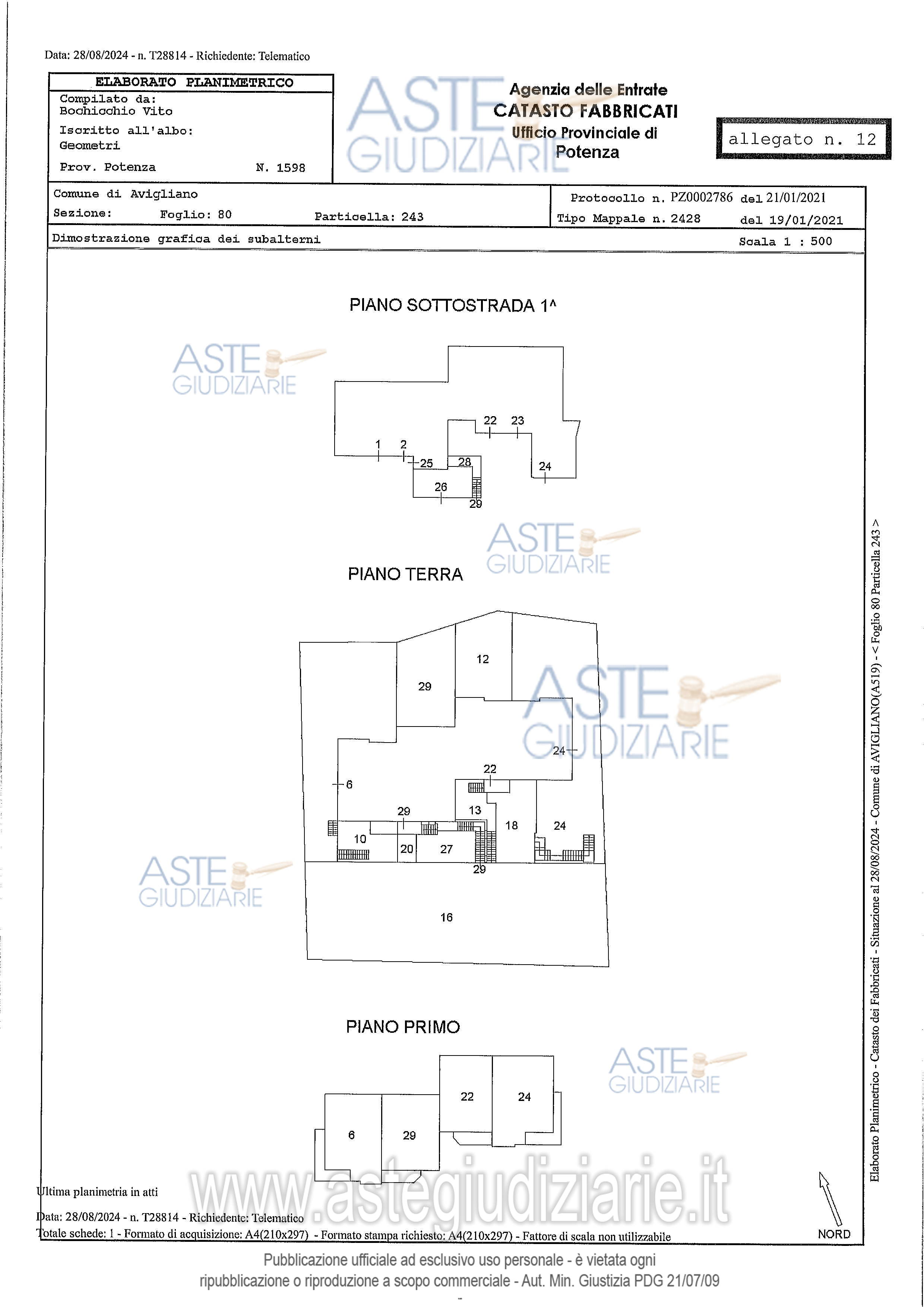 Vendita all'asta Senza incanto - LOTTO UNICO: Piena e intera proprietà in Comune di AVIGLIANO (PZ), alla Via dei Tigli n. 42 (Località Impiso), catastalmente Via delle Magnolie, casa di abitazione sviluppantesi su due livelli (piano T-1), della consistenza catastale di vani 6,5, con annesso deposito-garage al piano seminterrato della consistenza catastale di mq. 65, oltre a mq. 200 di terrazzi e giardini, e corte esclusiva,. Prezzo base € 79.412,00 (offerta minima € 59.559,19). Data vendita 20/05/2026 ore 10:00. Professionista delegato alla vendita Not. Antonio Di Lizia - Email "esecuzioni@notardilizia.it"; Tel. 0971444777. Custode Giudiziario Not. Antonio Di Lizia - Email "esecuzioni@notardilizia.it"; Tel. 0971444777. Rif. Tribunale di Potenza - Esecuzione immobiliare post legge 80 n. 65/1992