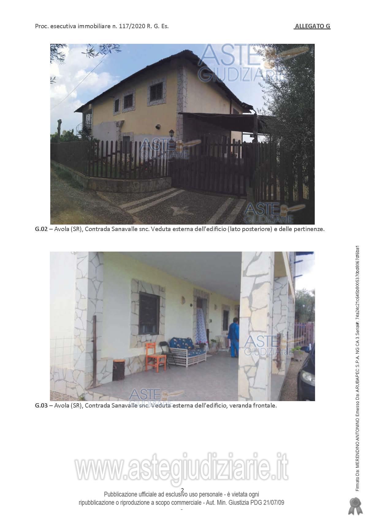 Vendita all'asta Senza incanto, con gara telematica sincrona mista - LOTTO UNICO: Abitazione posta al piano terreno di una villa di due livelli fuori terra, adibita a civile abitazione con terreno di pertinenza di 2.690 m.q. e vani accessori esterni, sita ad Avola (SR), Contrada Sanavalle snc, piano terra, riportati al N.C.E.U. al F. 62, p.lla 66, sub. 1, cl. 2, ctg. A/7, vani 7, R.C. €. 723,04, Cl. Energetica “G” e al N.C.T. al F. 62, p.lla 66 . Prezzo base € 202.500,00 (offerta minima € 151.875,00). Data vendita 27/01/2026 ore 13:00. Giudice Concita Cultrera. Professionista delegato alla vendita Avv. Sergio Spinoso - Email "info@studiolegalespinoso.it"; Cell. 3715716444; Tel. 0931754382. Custode Giudiziario Avv. Sergio Spinoso - Email "info@studiolegalespinoso.it"; Cell. 3715716444; Tel. 0931754382. Rif. Tribunale di Siracusa - Esecuzione immobiliare post legge 80 n. 117/2020