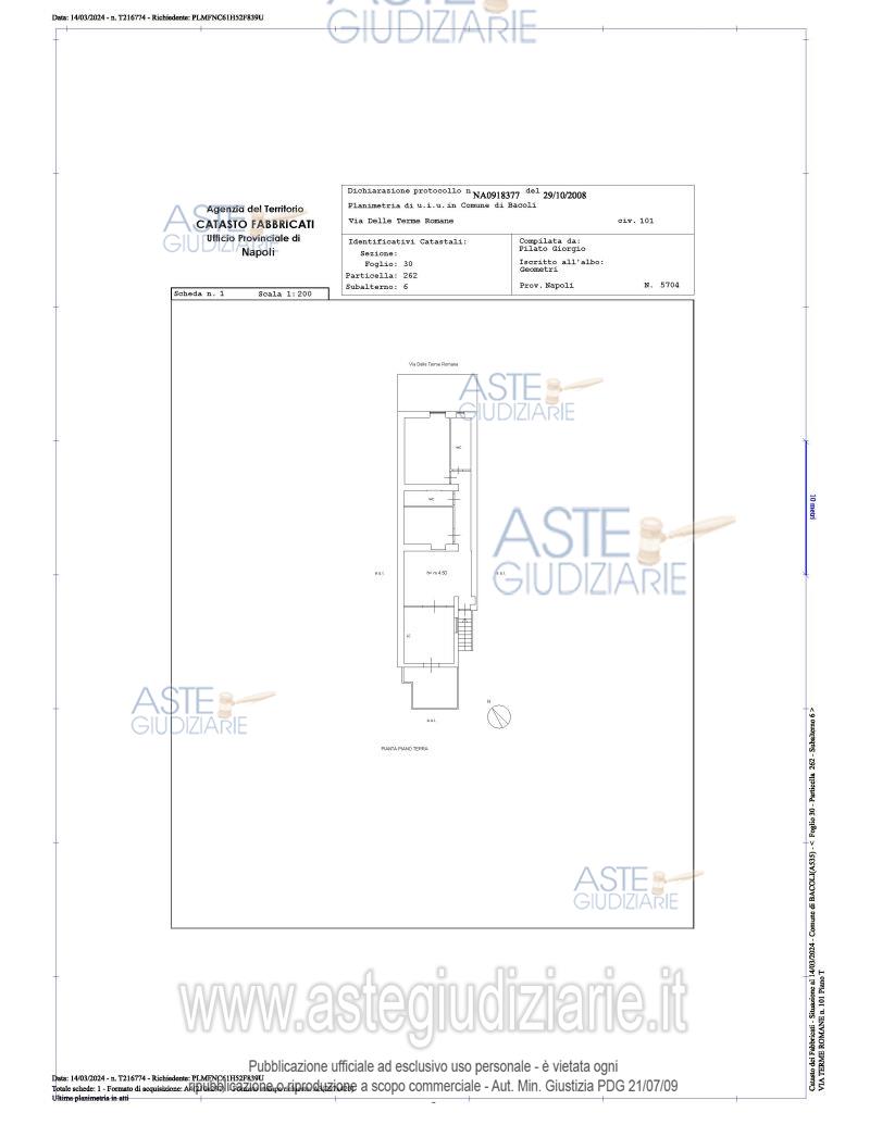 Vendita all'asta Senza incanto, con gara telematica asincrona - LOTTO UNICO: LOTTO UNICO: piena ed intera proprietà (1/1) di appartamento con area scoperta esclusiva annessa ad uso posto auto, fronte strada, sito in Bacoli (NA), alla via delle Terme Romane n. 101, piano rialzato (piano terra catastale), con ingresso indipendente da una scala esclusiva coperta, posta sulla destra del cortile comune, per chi entra; il tutto riportato nel Catasto Fabbricati del Comune di Bacoli al foglio 30, particella 262, subalterno 6. Prezzo base € 133.000,00 (offerta minima € 99.750,00). Data inizio operazioni di vendita: 20/01/2026 ore 17:00. Professionista delegato alla vendita Avv. Avv. Gennaro Casoria - Email "avvocatogennarocasoria@gmail.com"; Cell. 3456513902. Custode Giudiziario Avv. Avv. Gennaro Casoria - Email "avvocatogennarocasoria@gmail.com"; Cell. 3456513902. Rif. Tribunale di Napoli - Esecuzione immobiliare post legge 80 n. 481/2022