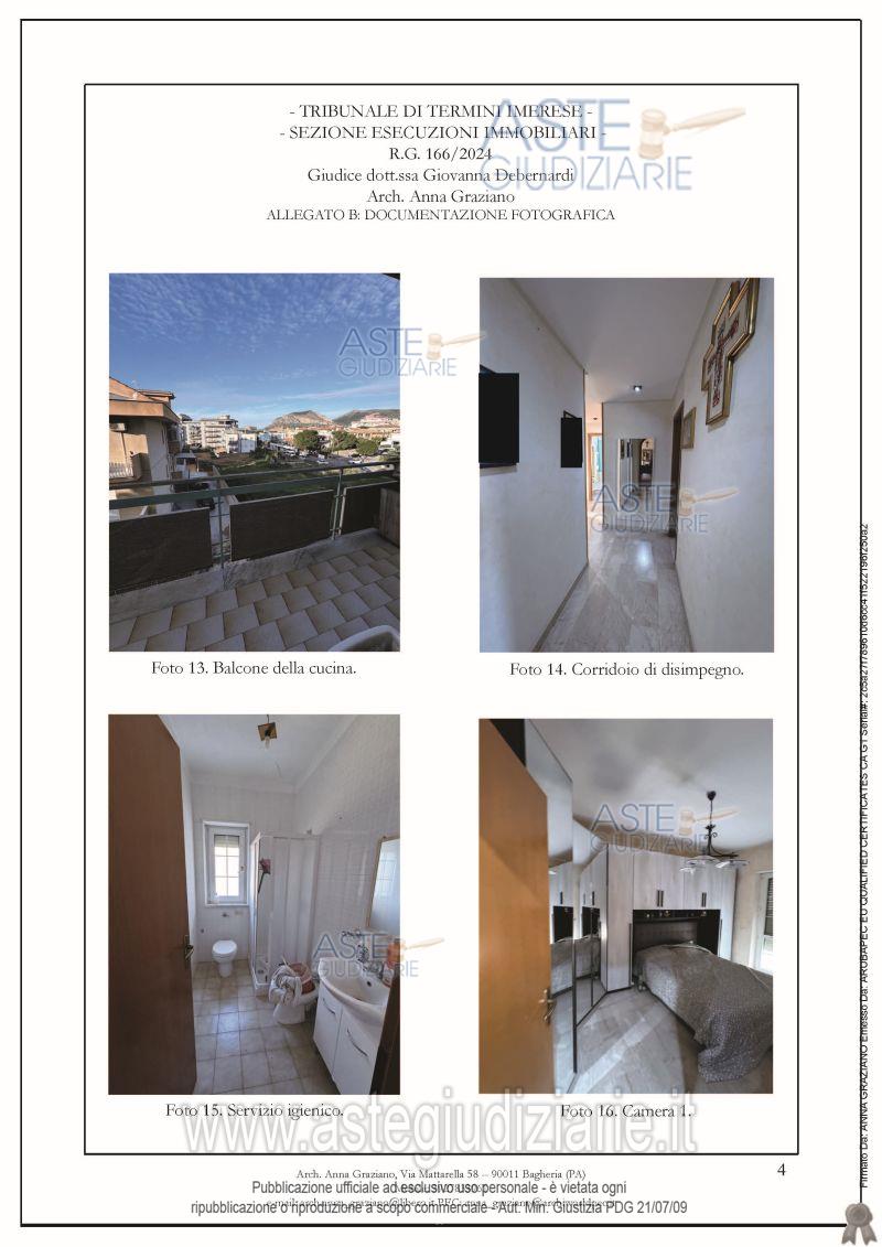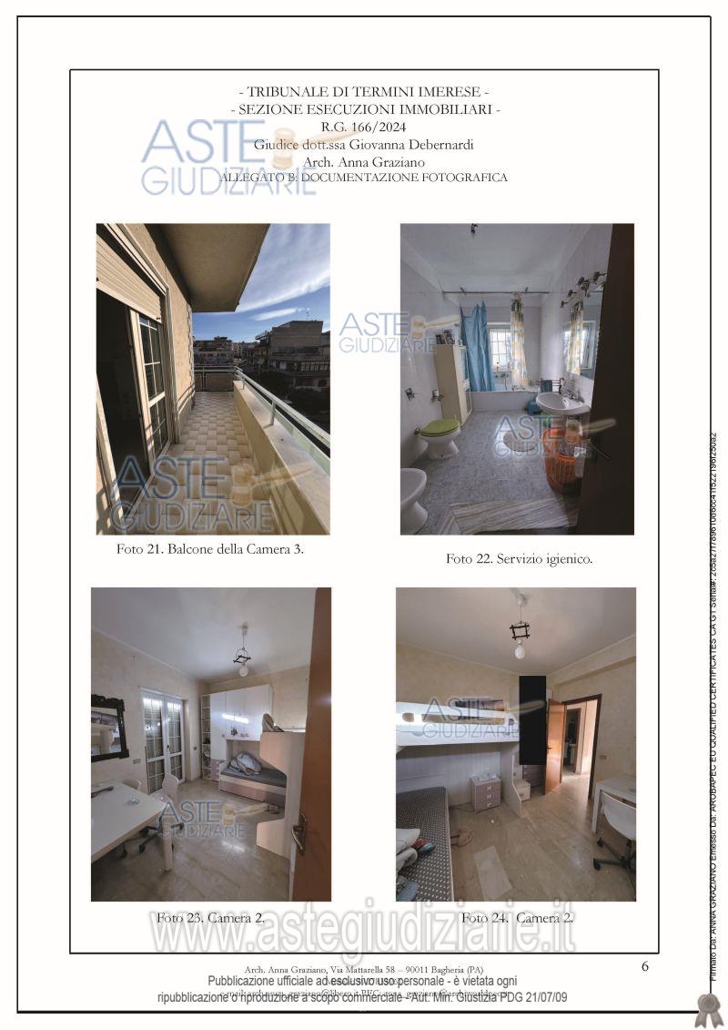 Vendita all'asta Senza incanto, con gara telematica sincrona - LOTTO UNICO: Appartamento al secondo piano in Bagheria (PA), Via Giuseppe Bagnera n. 19. Prezzo base € 123.579,80 (offerta minima € 92.684,85). Data vendita 11/03/2026 ore 10:00. Professionista delegato alla vendita Avv. Tommaso Raimondo - Email "raimondostudiolegale@libero.it"; Cell. 3475472228; Tel. 0921676347. Custode Giudiziario Avv. Tommaso Raimondo - Email "raimondostudiolegale@libero.it"; Cell. 3475472228; Tel. 0921676347. Rif. Tribunale di Termini Imerese - Espropriazione immobiliare (cartabia) n. 166/2024