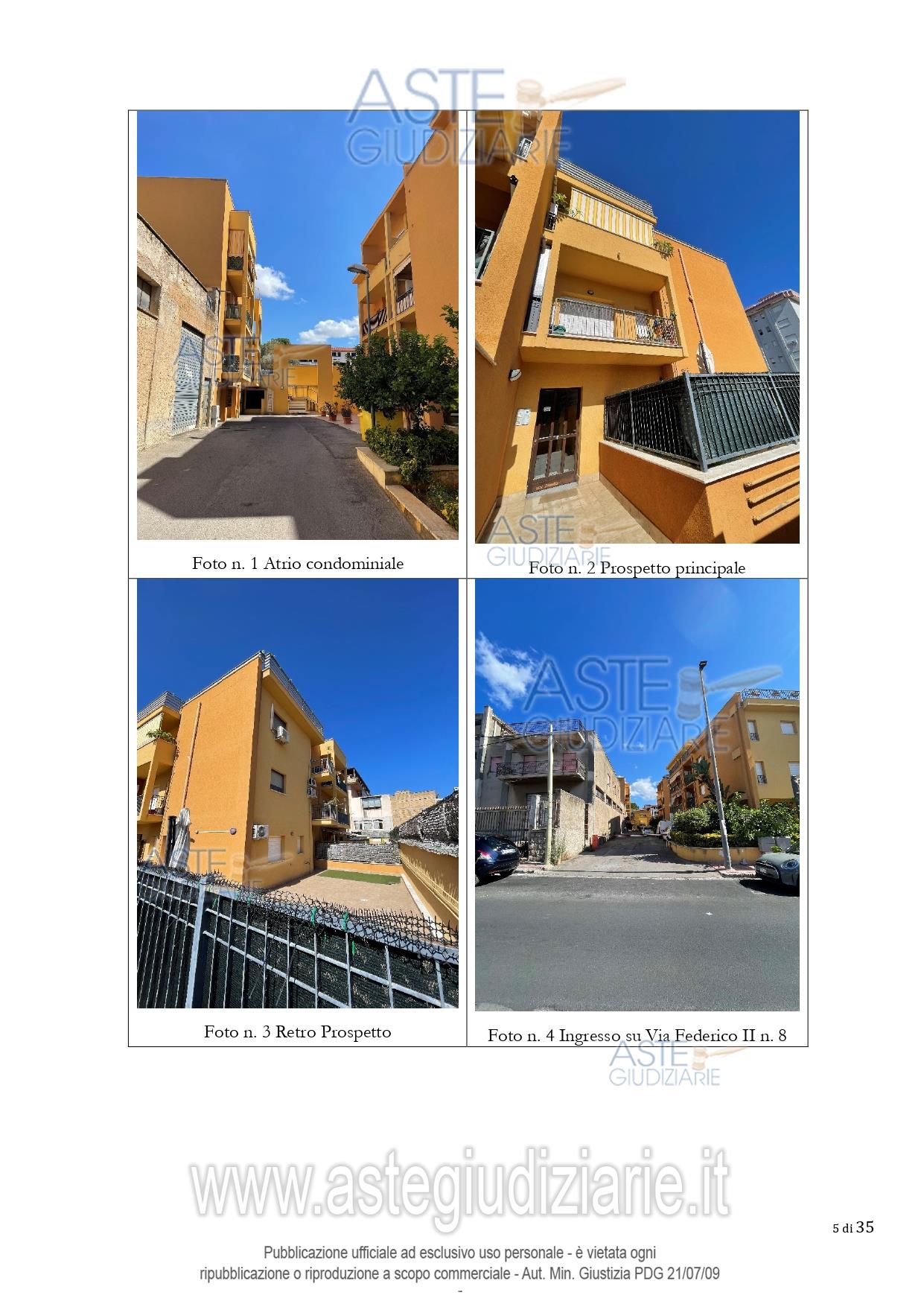 Vendita all'asta Senza incanto, con gara telematica sincrona - LOTTO UNICO: Appartamento ubicato al piano primo del fabbricato in Bagheria Via Federico II n. 8, censito al CF al fg. 11 part.lla 5217 sub 39 cat. catastale A2 classe 3 cons. 5 vani superficie catastale mq 75 totale escluse aree esterne 72 mq e posto auto coperto al piano cantinato del medesimo fabbricato, censito al fg. 11 part.lla 5217 sub 96 cat. catastale C6 classe 2 consistenza catastale mq 14. Prezzo base € 75.708,16 (offerta minima € 56.781,12). Data vendita 23/06/2026 ore 10:00. Professionista delegato alla vendita: Avv. Antonia Virruso - Email "AVV.ANTONELLAVIRRUSO@YAHOO.IT"; Tel. 091/969140; Cell. 392/4052291.