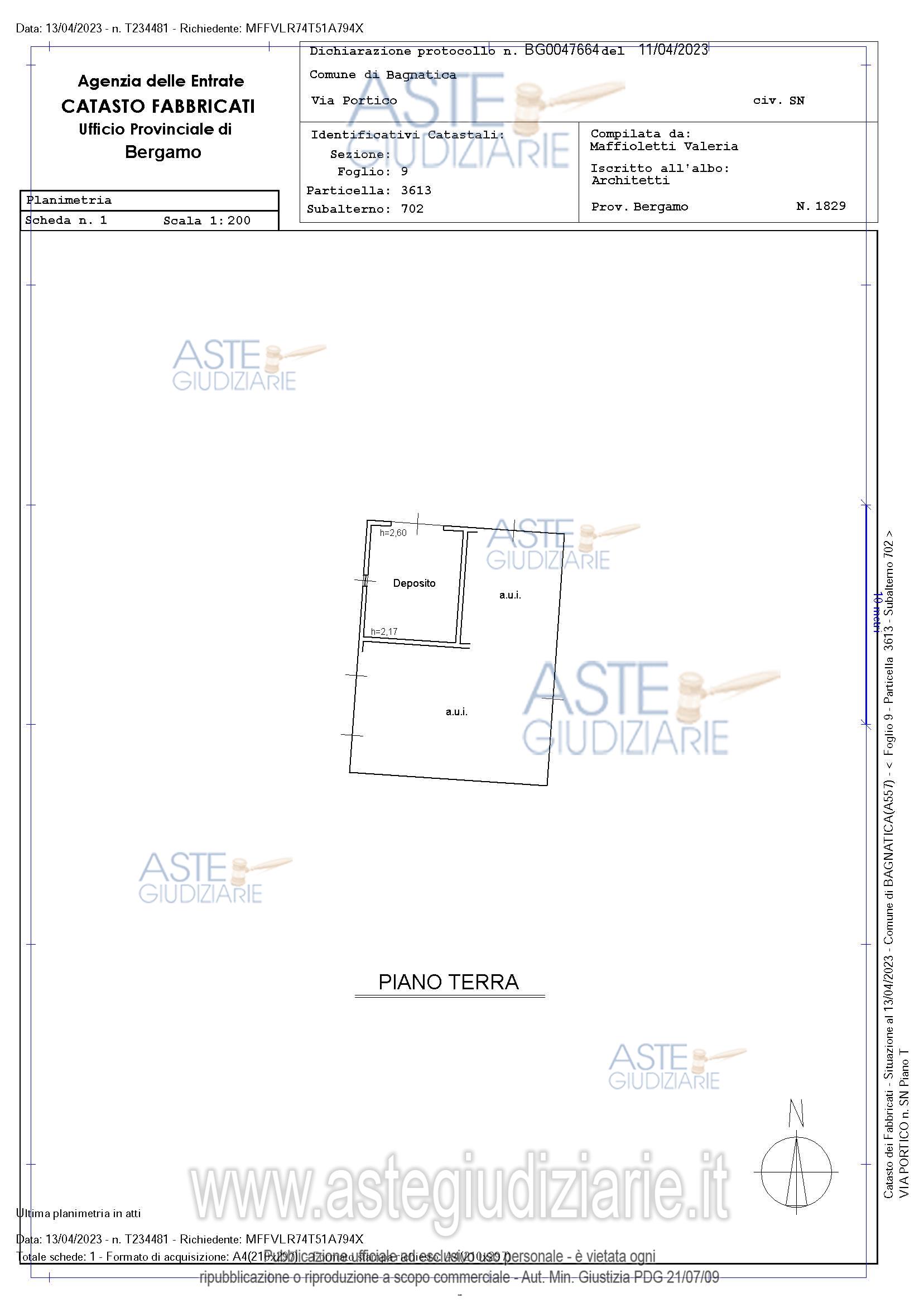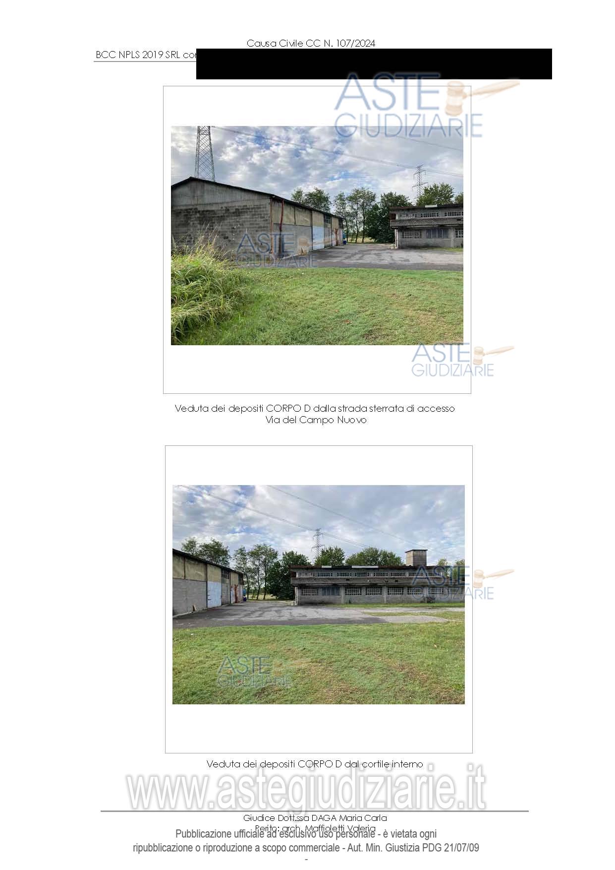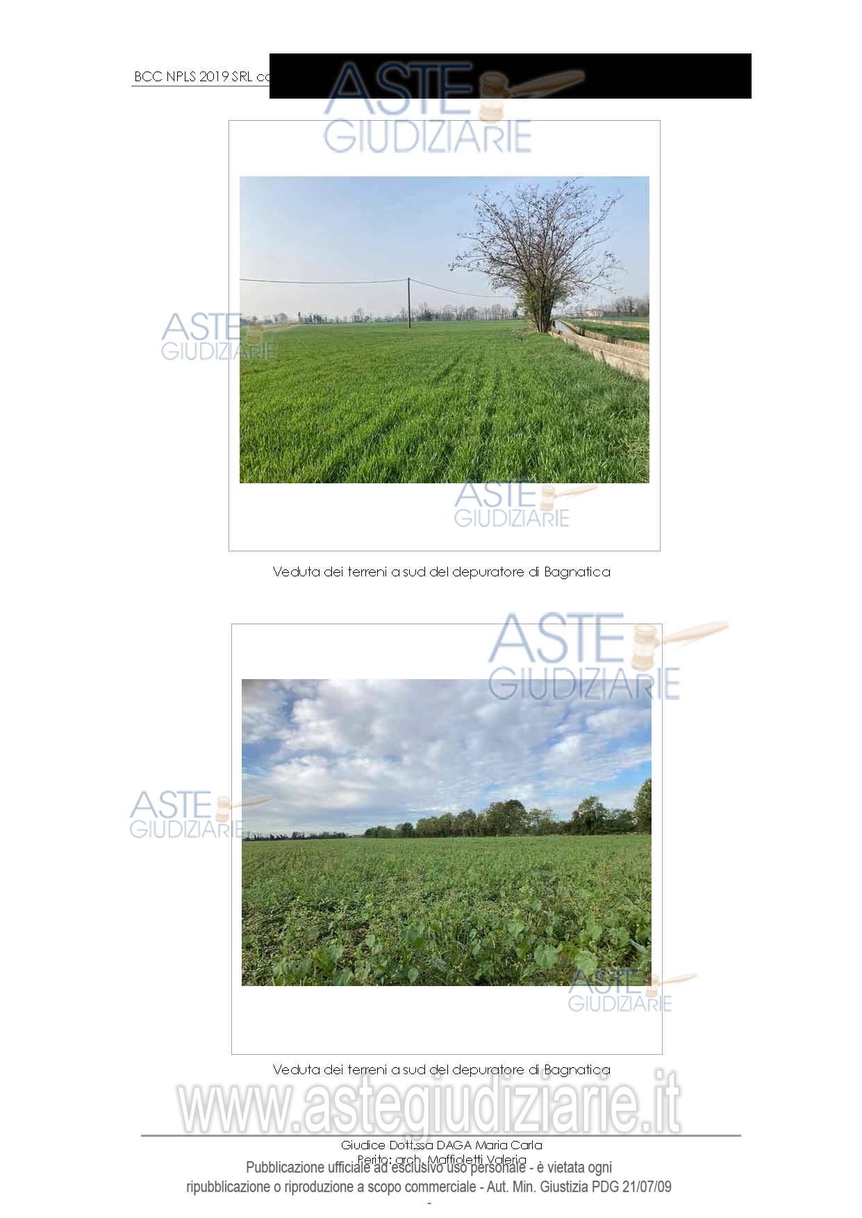 Vendita all'asta Senza incanto, con gara telematica asincrona - LOTTO UNICO: Complesso immobiliare denominato Cascina Portico sito nel Comune di Bagnatica composto da un fabbricato destinato ad abitazioni, un piccolo fabbricato destinato a box e deposito, una cabina elettrica, due fabbricati destinati a magazzino e deposito e una serie di terreni agricoli pianeggianti e ben tenuti. Prezzo base € 535.371,95 (offerta minima € 401.528,96). Data inizio operazioni di vendita: 16/04/2026 ore 10:00. Giudice Luca Verzeni. Professionista delegato alla vendita Dott. Emilia Bolandrina - Email "e.bolandrina@deltadatisrl.it"; Tel. 035983513. Custode Giudiziario Avv. Silvana Bassi - Email "avvsilvanabassi@gmail.com"; Tel. 035220699. Rif. Tribunale di Bergamo - Contenzioso civile n. 107/2024