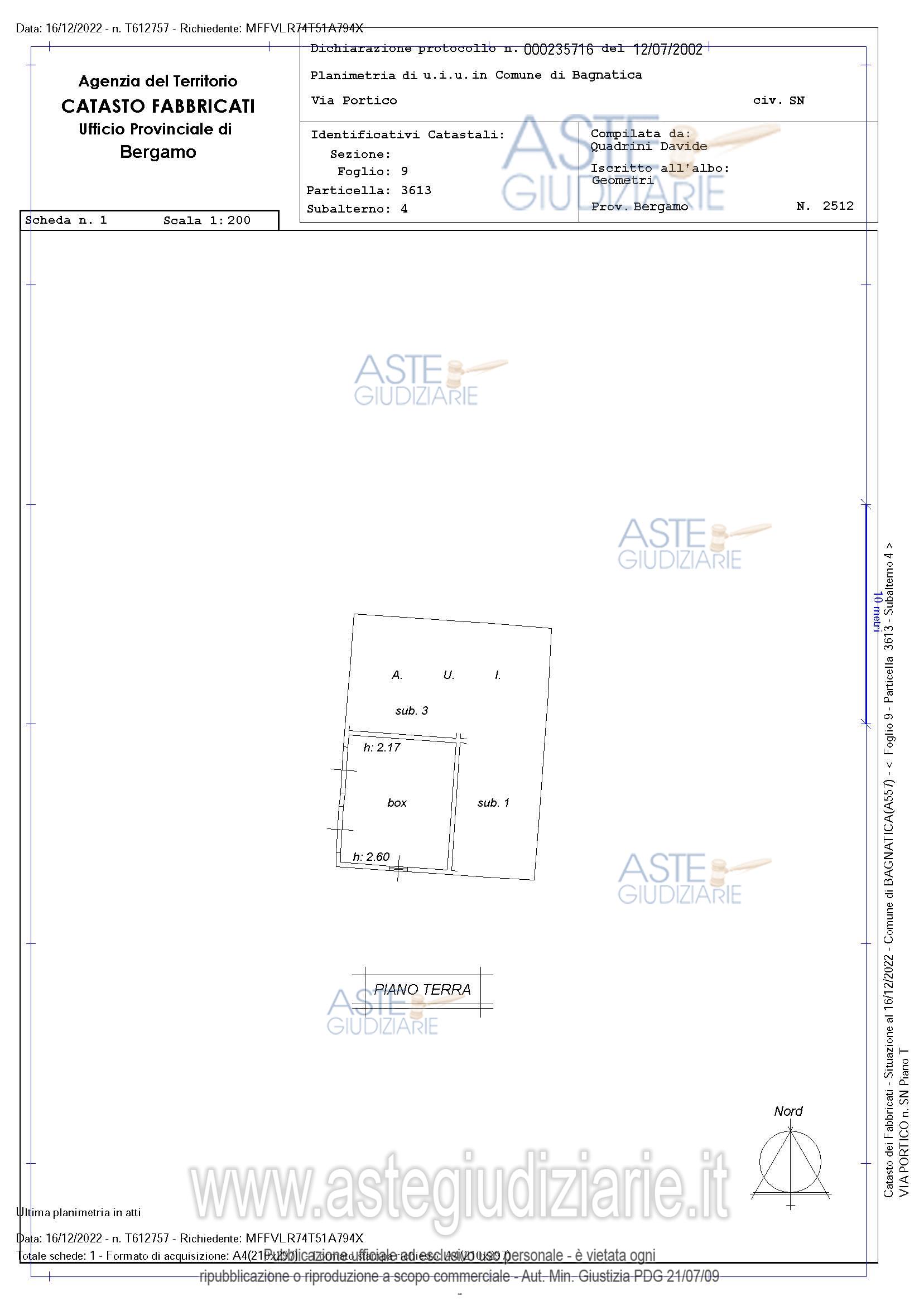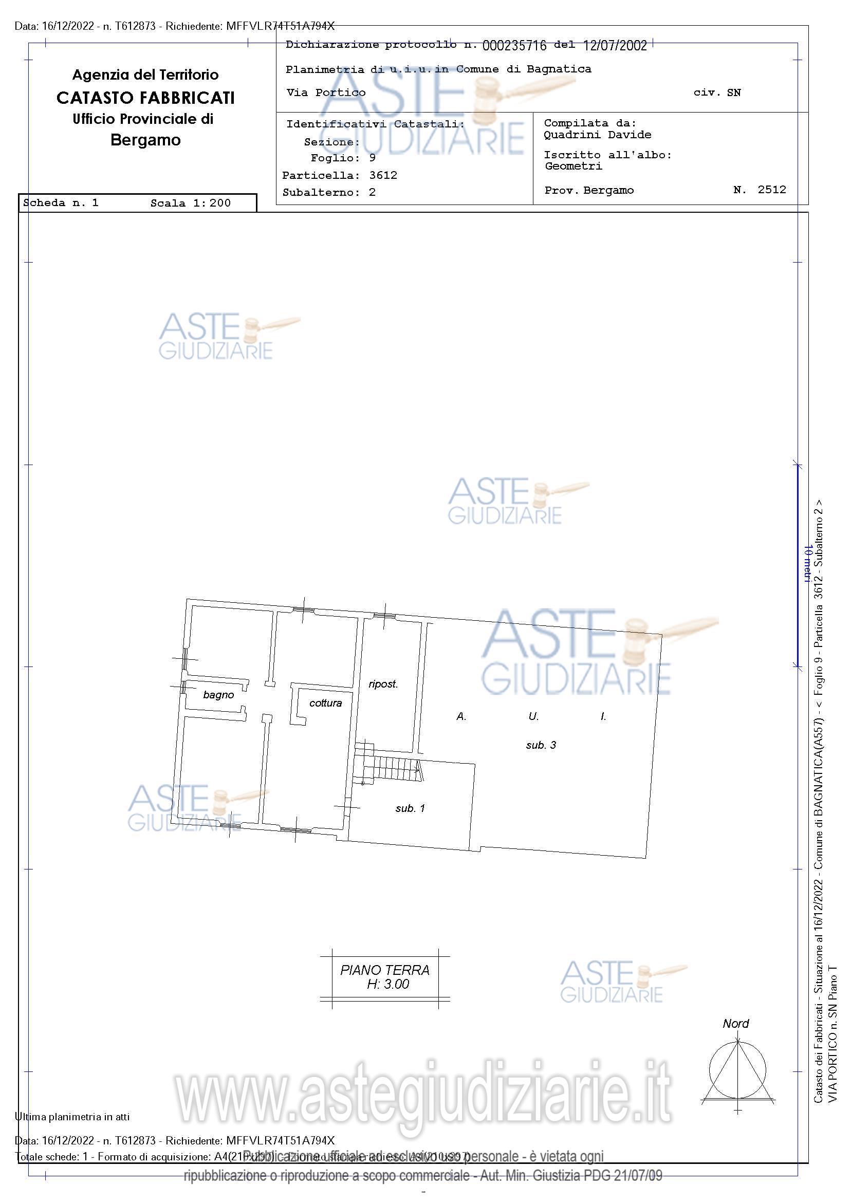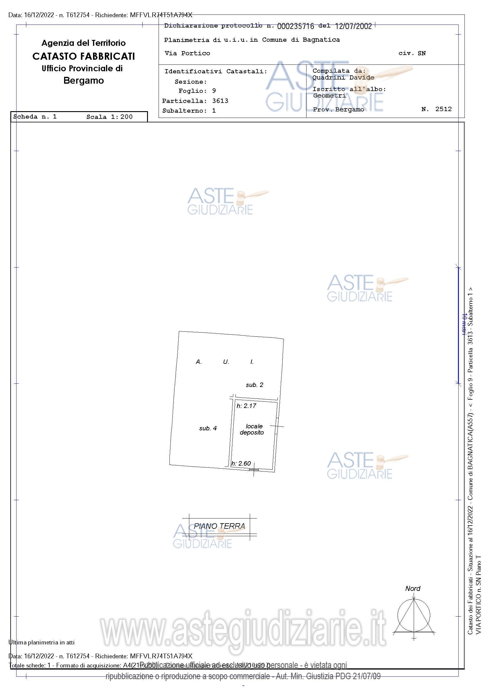 Vendita all'asta Senza incanto, con gara telematica asincrona - LOTTO UNICO: Complesso immobiliare denominato Cascina Portico sito nel Comune di Bagnatica composto da un fabbricato destinato ad abitazioni, un piccolo fabbricato destinato a box e deposito, una cabina elettrica, due fabbricati destinati a magazzino e deposito e una serie di terreni agricoli pianeggianti e ben tenuti. Prezzo base € 535.371,95 (offerta minima € 401.528,96). Data inizio operazioni di vendita: 16/04/2026 ore 10:00. Giudice Luca Verzeni. Professionista delegato alla vendita Dott. Emilia Bolandrina - Email "e.bolandrina@deltadatisrl.it"; Tel. 035983513. Custode Giudiziario Avv. Silvana Bassi - Email "avvsilvanabassi@gmail.com"; Tel. 035220699. Rif. Tribunale di Bergamo - Contenzioso civile n. 107/2024