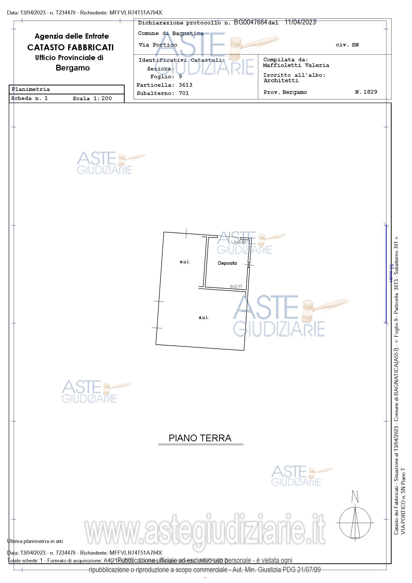 Vendita all'asta Senza incanto, con gara telematica asincrona - LOTTO UNICO:  Complesso immobiliare denominato Cascina Portico sito nel Comune di Bagnatica composto da un fabbricato destinato ad abitazioni, un piccolo fabbricato destinato a box e deposito, una cabina elettrica, due fabbricati destinati a magazzino e deposito e una serie di terreni agricoli pianeggianti e ben tenuti. Prezzo base € 713.829,26 (offerta minima € 535.371,95). Data inizio operazioni di vendita: 05/11/2025 ore 10:00. Giudice Maria Carla Daga. Professionista delegato alla vendita Dott. Emilia Bolandrina - Email "e.bolandrina@deltadatisrl.it"; Tel. 035983513. Custode Giudiziario Avv. Silvana Bassi - Email "avvsilvanabassi@gmail.com"; Tel. 035220699.  Rif. Tribunale di Bergamo - Contenzioso civile n. 107/2024