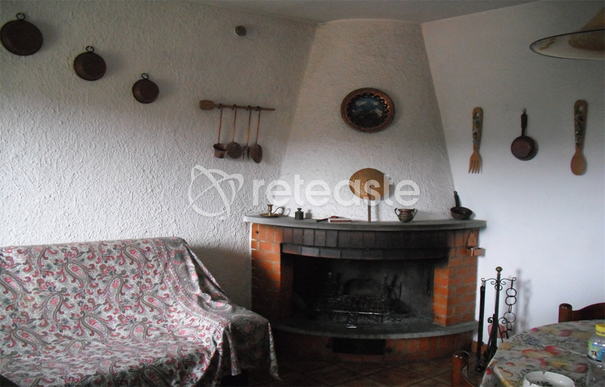 Al piano secondo, accessibile tramite un disimpegno comune con l'appartamento adiacente, si trova un'ampia e luminosa area giorno. Questo ambiente è valorizzato da finestre contrapposte, che offrono una piacevole vista sul paesaggio circostante, e da un bel camino in mattoni a vista posizionato nell'angolo, che dona un'atmosfera calda e accogliente. La cucina, di configurazione tradizionale con mobili in legno e piastrelle, è funzionale e ben organizzata. Le pareti presentano una finitura a intonaco rustico, e la pavimentazione è in piastrelle.