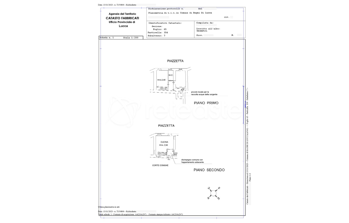 À ce même niveau se trouve un autre WC séparé. Au même premier étage, il y a aussi une petite pièce dédiée à la collecte des eaux d'une source, un détail particulier de la propriété. La propriété, de construction ancienne, s'étend sur une surface commerciale de 82 mètres carrés et comprend 4,5 pièces. Actuellement, l'approvisionnement en eau est alimenté par un puits commun. Pour compléter la propriété, il y a deux caves appartenant à la propriété, de dimensions généreuses (25 mètres carrés et 20 mètres carrés), mais en copropriété; par conséquent, la part objet de la vente pour ces dernières est égale à 1/2. Cette propriété représente une opportunité intéressante à la fois en tant que résidence principale pour ceux qui recherchent un équilibre entre nature, détente et services, ainsi qu'en tant qu'investissement dans un lieu de grande valeur touristique et paysagère reconnue.