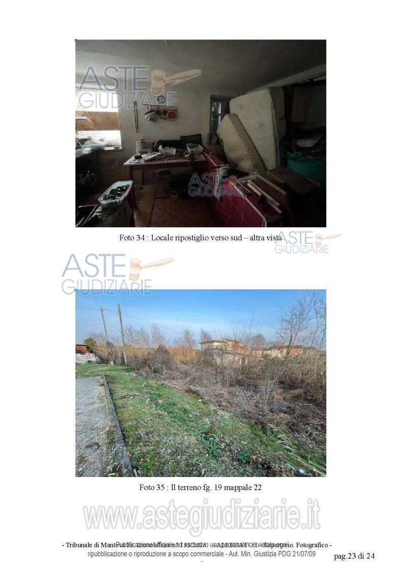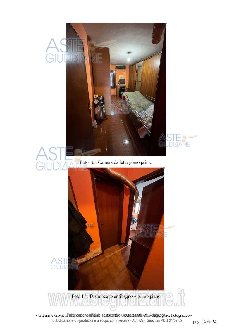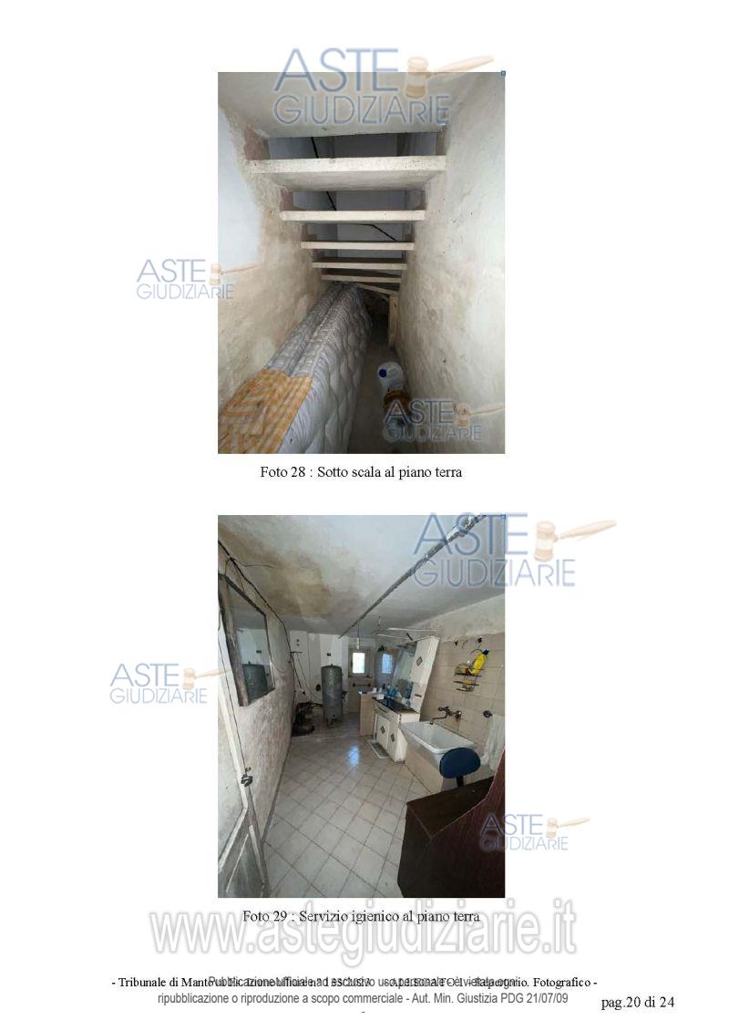Vendita all'asta Senza incanto, con gara telematica sincrona mista - LOTTO UNICO: Piena proprietà di appartamento disposto su due livelli in edificio a schiera, con due aree pertinenziali staccate e posto auto scoperto, oltre a due terreni non edificabili. Prezzo base € 41.225,00 (offerta minima € 30.919,00). Data vendita 17/12/2025 ore 15:00. Giudice Mauro Pietro Bernardi. Professionista delegato alla vendita Not. Pierpaolo Iacoppe. Custode Giudiziario Sovemo Srl Istituto Vendite Giudiziarie Di Mantova - Email "immobiliaremantova@sovemo.com"; Tel. 0376220694. Rif. Tribunale di Mantova - Espropriazione immobiliare (cartabia) n. 133/2023
