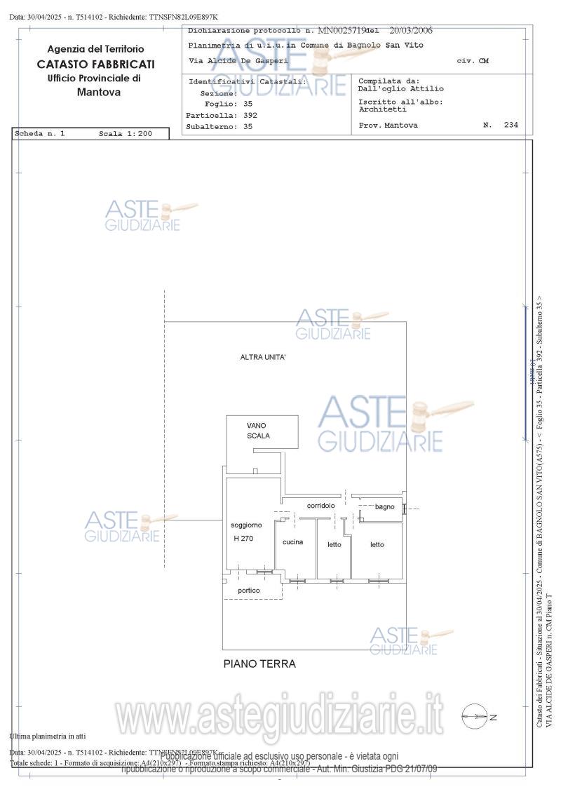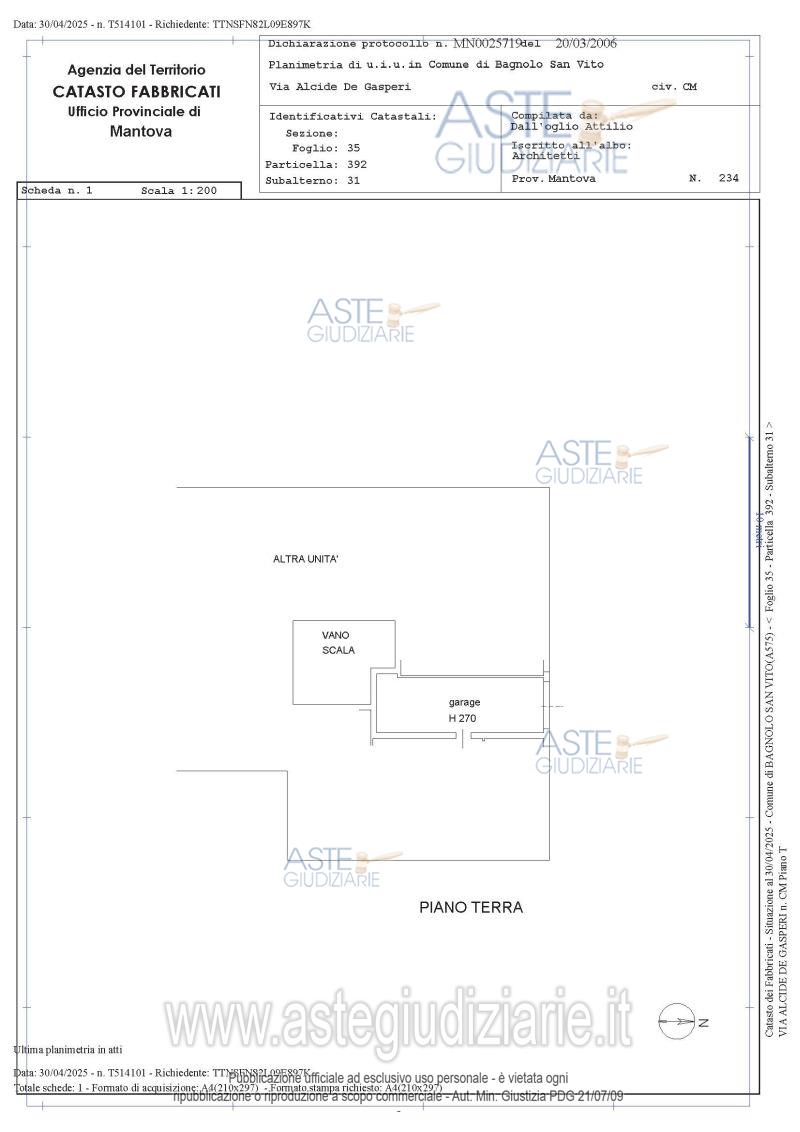 Vendita all'asta Senza incanto, con gara telematica sincrona mista - LOTTO UNICO: Piena proprietà di unità immobiliare residenziale, facente parte di un fabbricato condominiale, denominato "Condominio II Glicine", sita in Comune di Bagnolo San Vito (MN) in Via Alcide De Gasperin.12 G composta da appartamento e garage. Prezzo base € 75.735,00 (offerta minima € 56.800,00). Data vendita 09/06/2026 ore 14:00. Professionista delegato alla vendita Avv. Claudio Eruzzi - Email "info@studioeruzzi.com"; Tel. 0376225898. Rif. Tribunale di Mantova - Espropriazione immobiliare (cartabia) n. 71/2025