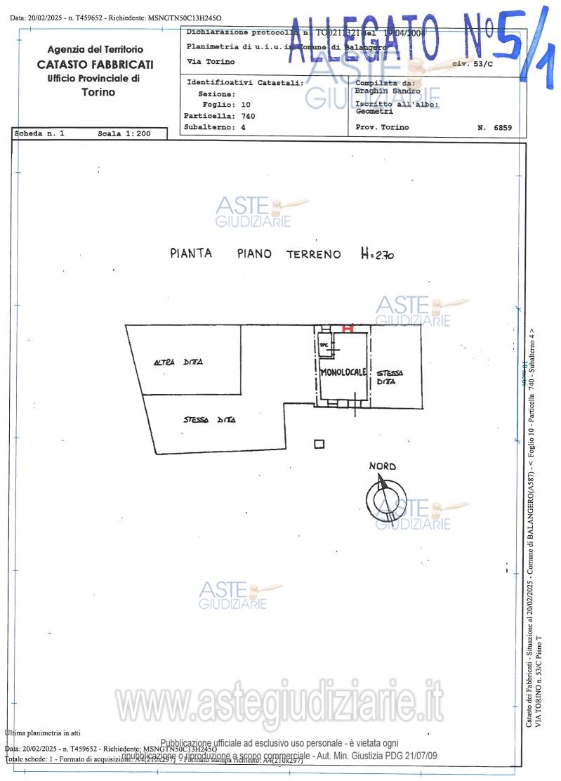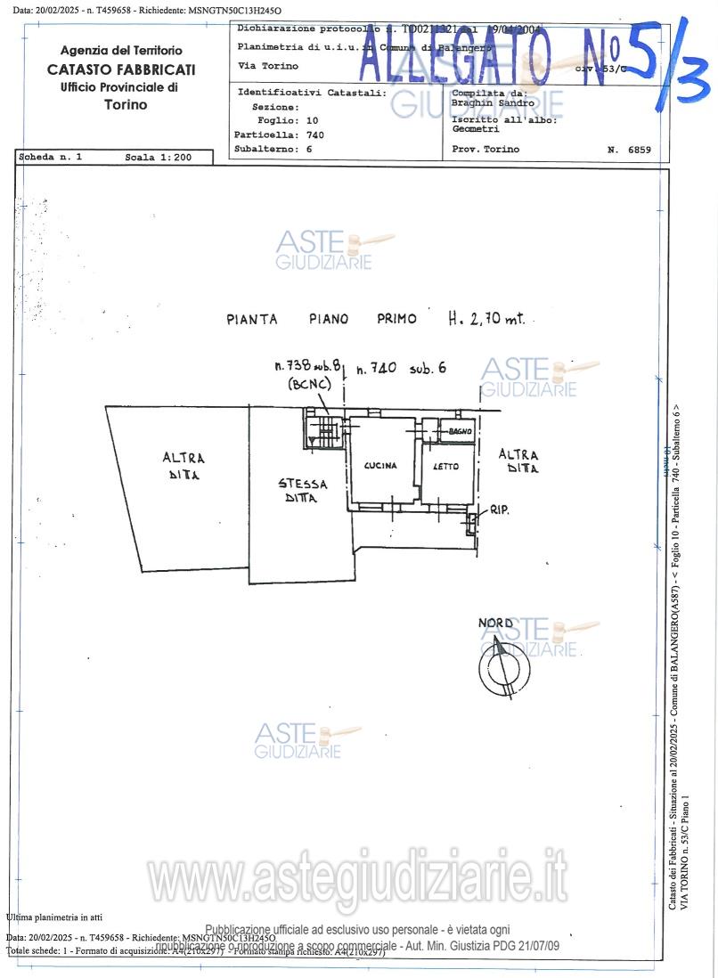 Vendita in attesa dell'emissione del nuovo bando d'asta. LOTTO 1: LOTTO PRIMO: DIRITTO DI 1/2 (UN MEZZO) DELLA PIENA PROPRIETA', in Comune di Balangero (TO), via Torino n. 53/B e n. 53/C: 1) alloggio piano T, composto da monolocale con servizio wc; 2) autorimessa piano T; 3) alloggio piano 1, composto da: camera, cucina, bagno e antibagno, balcone con piccolo ripostiglio; 4) alloggio piano 1, composto da: tinello con cucinino, camera, bagno, disimpegno, veranda con affaccio su balcone, un disimpegno e un ripostiglio distaccati e ricompresi nel fabbricato dirimpettaio. Ultimo prezzo base € 30.000,00 (offerta minima € 22.500,00). Giudice Dott. Antonia Mussa. Curatore Dott. Alberto Miglia - Email "info@ddea.it"; Tel. 0115091524. Rif. Tribunale di Ivrea - Liquidazione giudiziale(cci) n. 43/2024