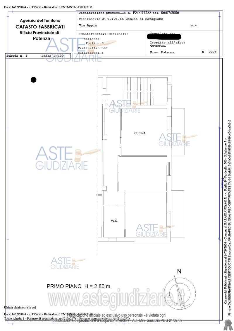 Vendita all'asta Senza incanto, con gara telematica asincrona - LOTTO 1: -diritto di proprietà per la quota di 1/1 di un appartamento sito al primo piano di un fabbricato per civile abitazione in Via Appia Sud s.n.c. del Comune di Baragiano (PZ)- . Prezzo base € 40.987,50 (offerta minima € 30.740,62). Data inizio operazioni di vendita: 18/06/2026 ore 10:00. Professionista delegato alla vendita Avv. Francesco Missanelli - Email "francescomissanelli@gmail.com"; Tel. 0971443116. Custode Giudiziario Avv. Francesco Missanelli - Email "francescomissanelli@gmail.com"; Tel. 0971443116. Rif. Tribunale di Potenza - Esecuzione immobiliare post legge 80 n. 32/2021
