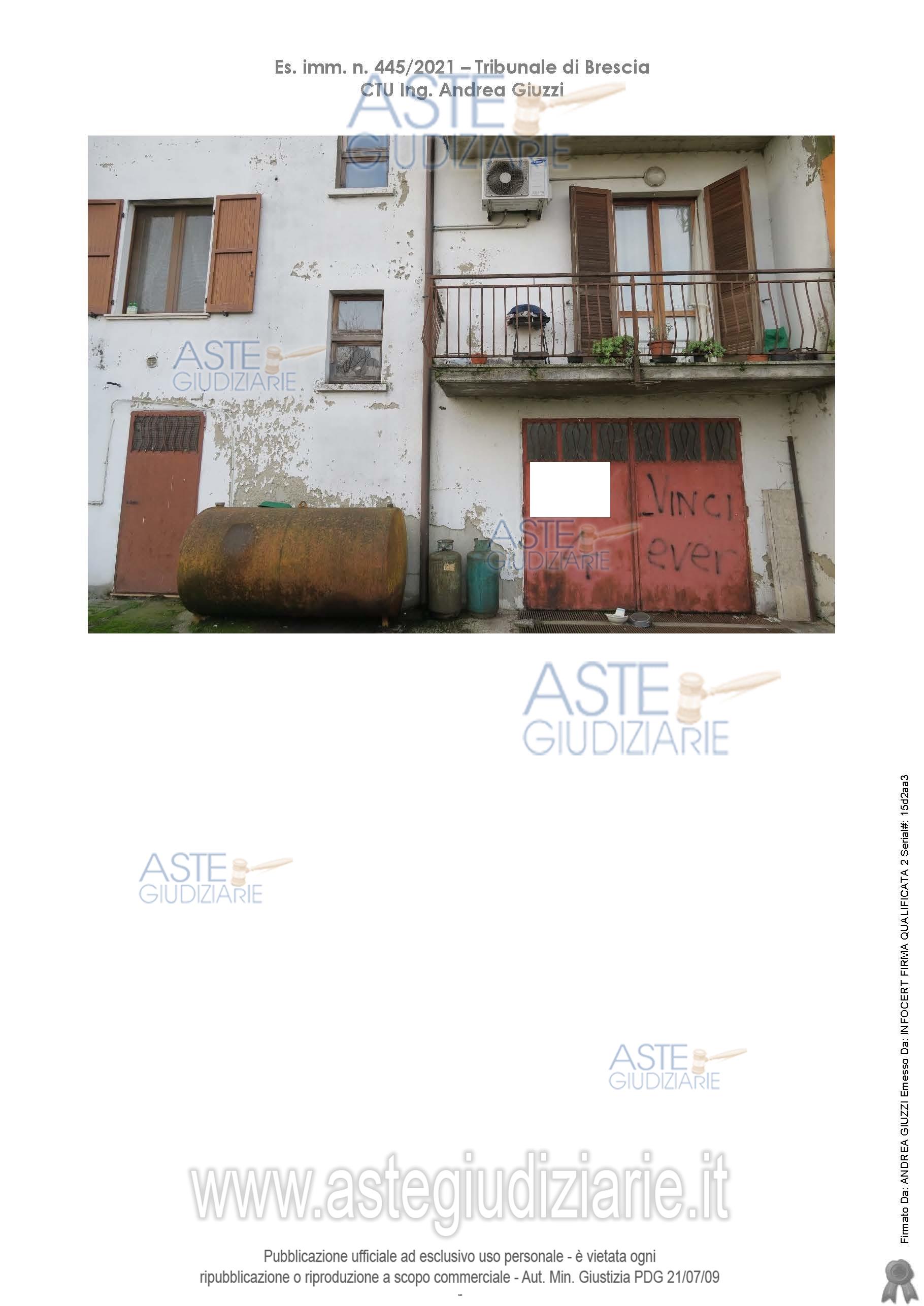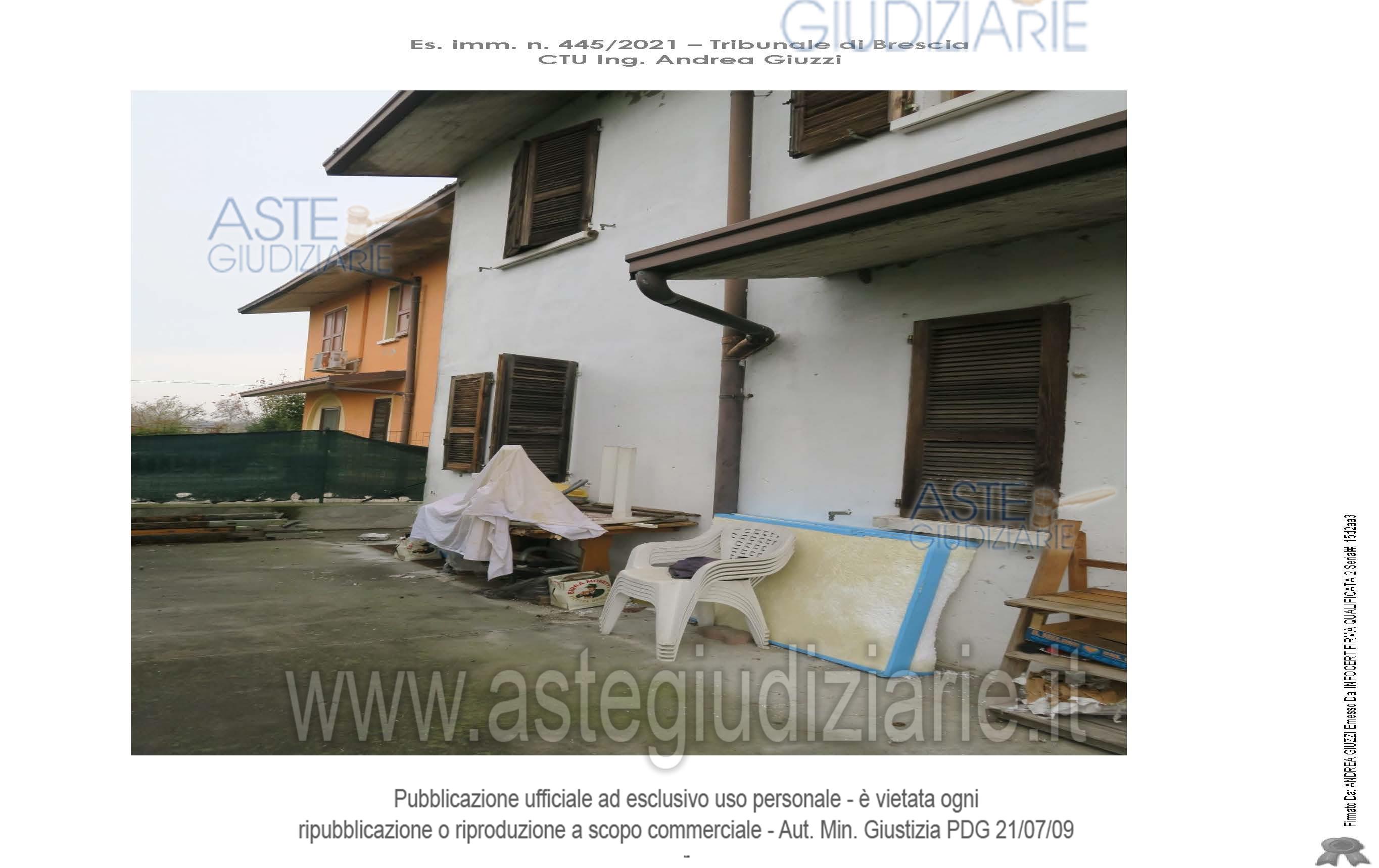 Vendita all'asta Senza incanto, con gara telematica asincrona - LOTTO 3: Unità immobiliare facente parte di un complesso con corti esclusive e autorimessa. Competono le proporzionali quote delle parti comuni. Prezzo base € 22.296,09 (offerta minima € 16.722,07). Data inizio operazioni di vendita: 22/10/2025 ore 10:00. Professionista delegato alla vendita Not. Simona Casale. Custode Giudiziario Not. Simona Casale - Email "visiteimmobili@anpebrescia.it"; Tel. 030222849. Rif. Tribunale di Brescia - Esecuzione immobiliare post legge 80 n. 445/2021